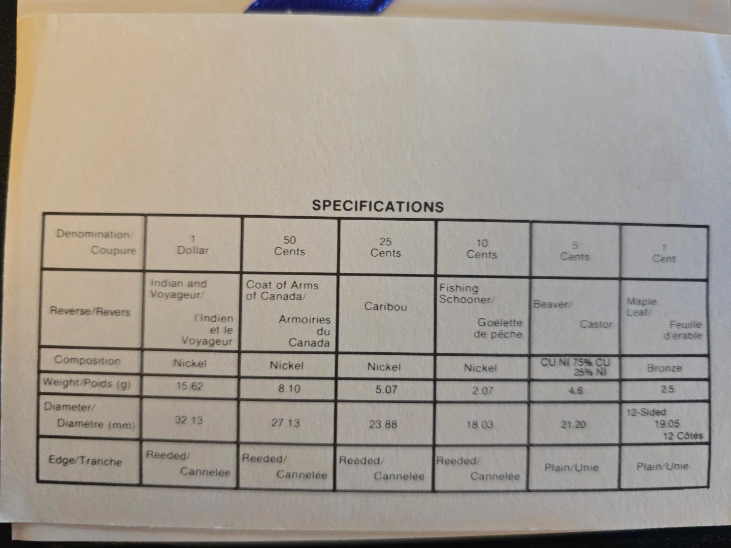This Royal Canadian Mint specimen set contains the first six circulating coins struck from a pair of dies. It includes a 1 Dollar, 50 Cents, 25 Cents, 10 Cents, 5 Cents, and 1 Cent coin. The set features coins made of Nickel and Bronze.