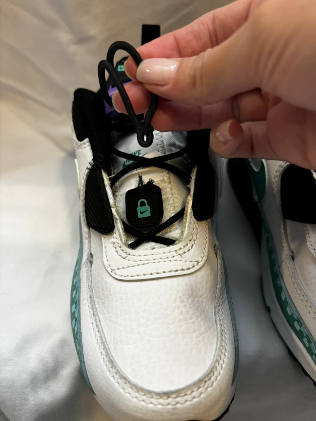 Nike Air Max 90 Toggle SE Sneaker - Size 2.5Y. Please note one of the toggles has come off the attachment however it still velcros, please see photos. $15 cash, porch pick up Kennedy and Eglinton.