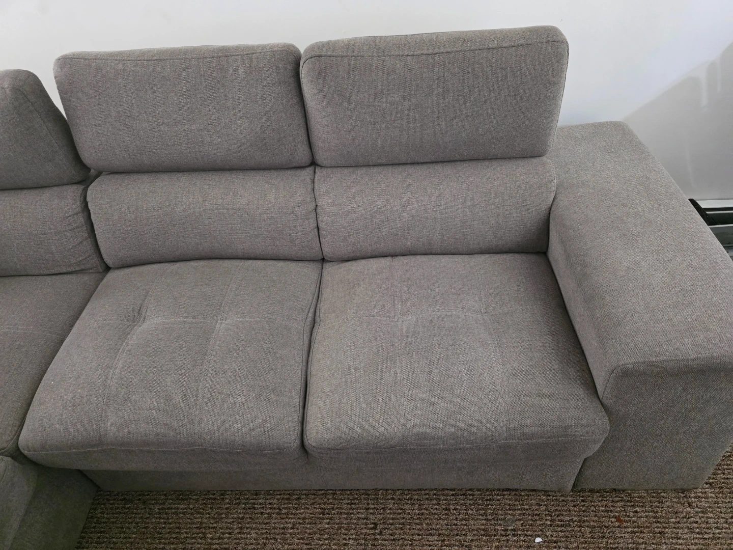 This grey sectional. L Shape bed sofa offers ample seating space. It's upholstered in a durable fabric and features adjustable headrests for added comfort. Its modular design allows for flexible arrangement.We are moving into a much larger apartment and have decided to upgrade to a bigger sectional to fill the space. Because of that, we unfortunately can’t take this couch with us.