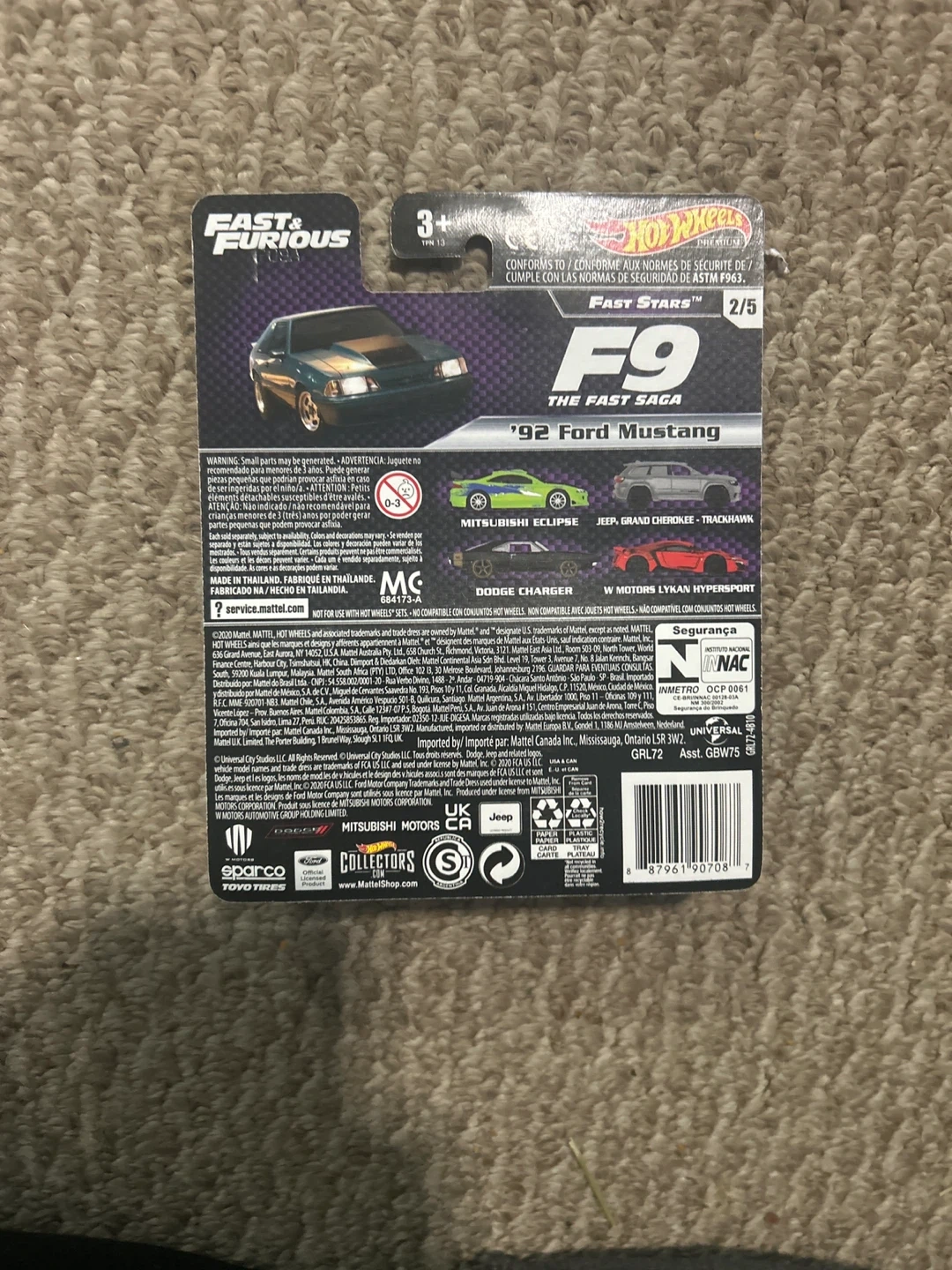 This is a Hot Wheels Premium '92 Ford Mustang from the Fast & Furious line. It's part of the F9 collection. This die-cast car is a 1:64 scale model.