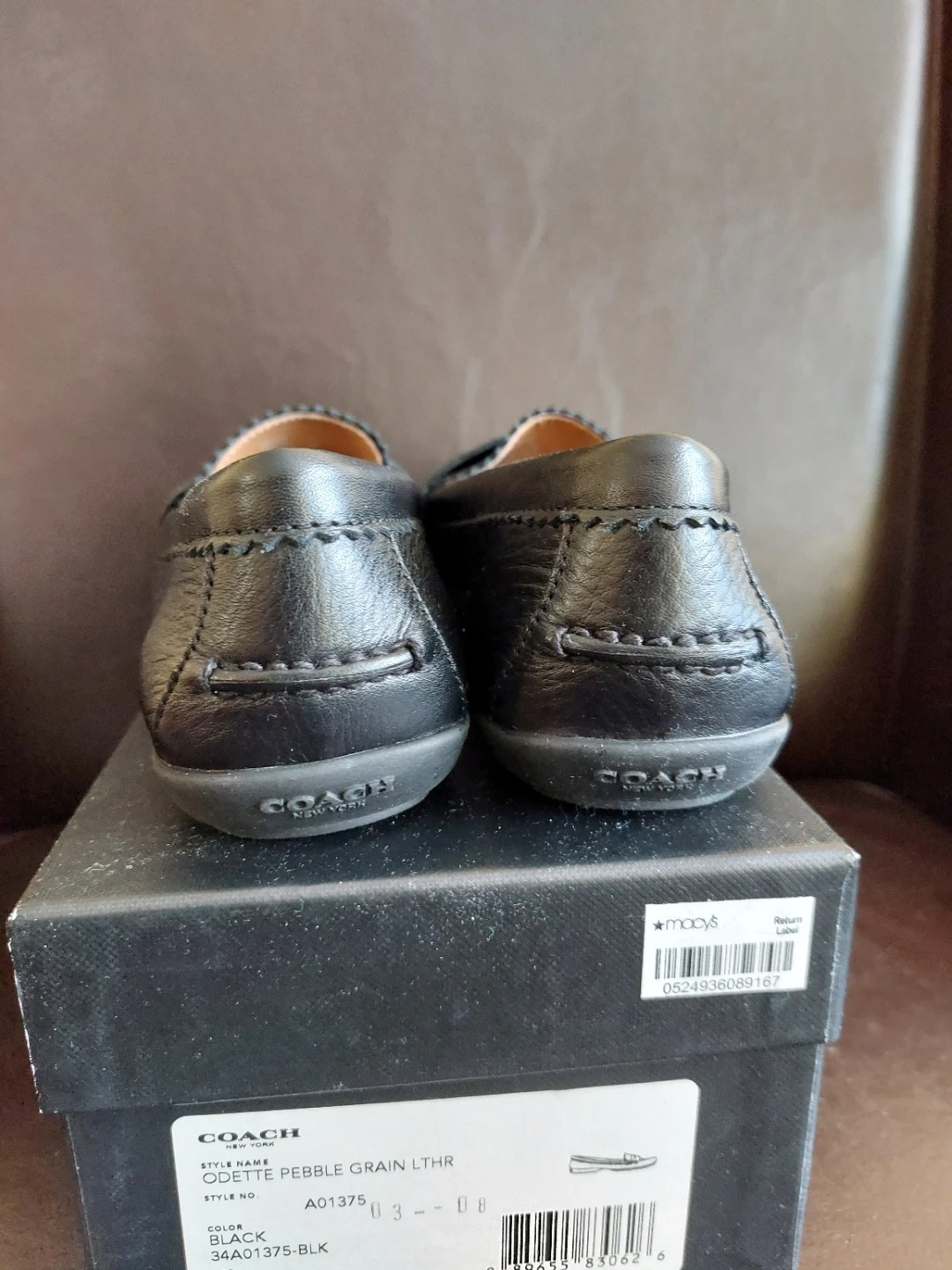 Classic black Coach loafers made from pebble grain leather, size 7.5. These shoes feature a comfortable slip-on design with the iconic Coach logo accent. They include the original box and care booklet. They are totally new, and the model is discontinued. Don't lose the opportunity to own one.