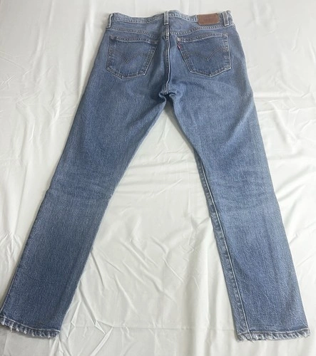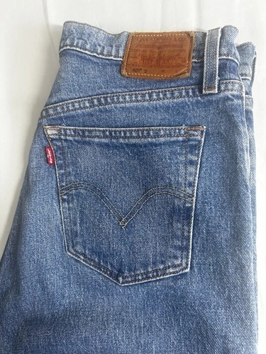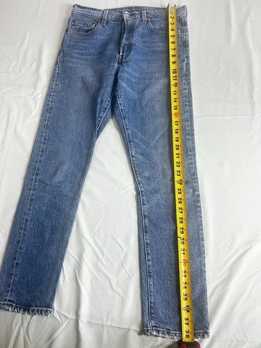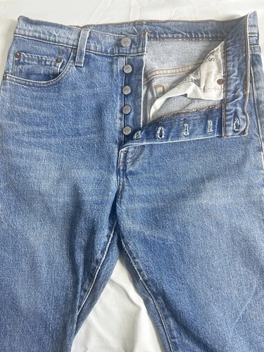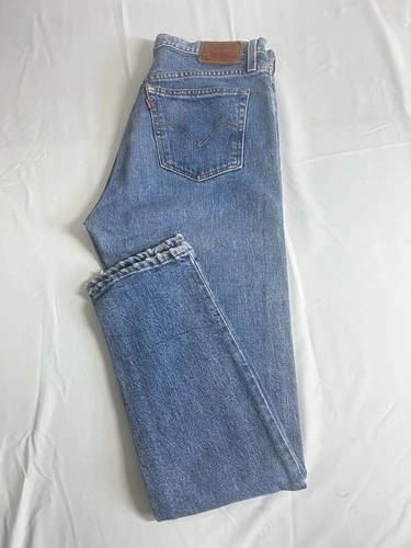 Classic fit Levi’s 501 Y2K Skinny Jeans for women, size 29x28. These feature a button closure, medium fabric wash, and are made of cotton denim in a stylish blue color. They have a vintage look and a 5-pocket design. Perfect for a casual yet trendy look, these are a versatile choice for everyday wear.