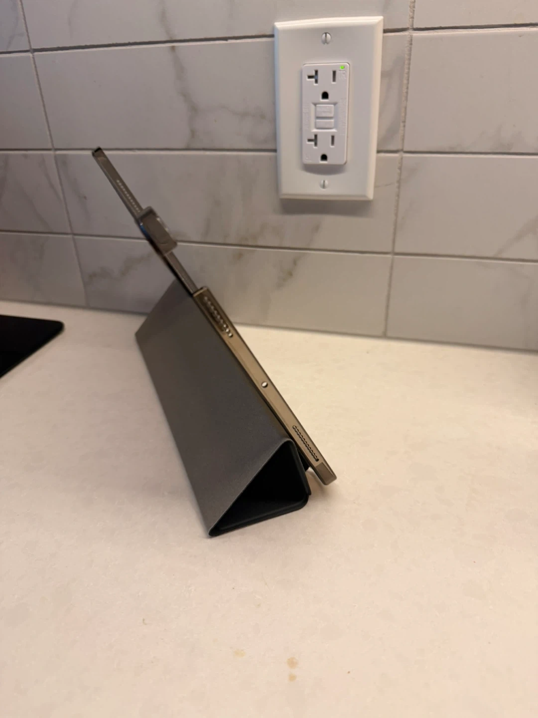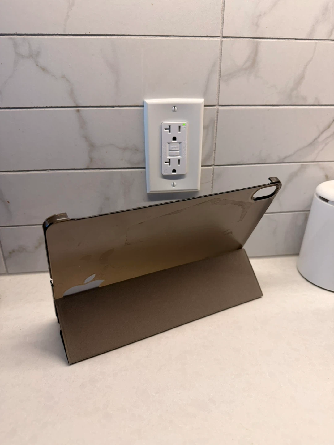 This is an Apple Smart Folio case for the 11-inch iPad Pro, 3rd generation. It offers front and back protection for your device. The case also folds into a stand for convenient viewing and typing. It's made with a polyurethane front cover and a polyester lining.