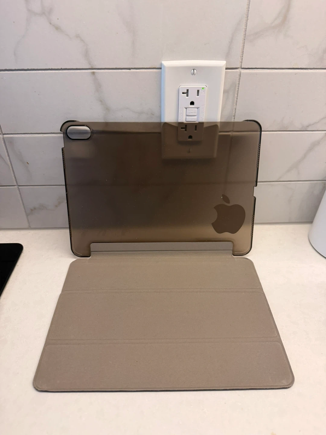 This is an Apple Smart Folio case for the 11-inch iPad Pro, 3rd generation. It offers front and back protection for your device. The case also folds into a stand for convenient viewing and typing. It's made with a polyurethane front cover and a polyester lining.