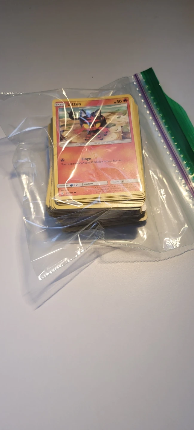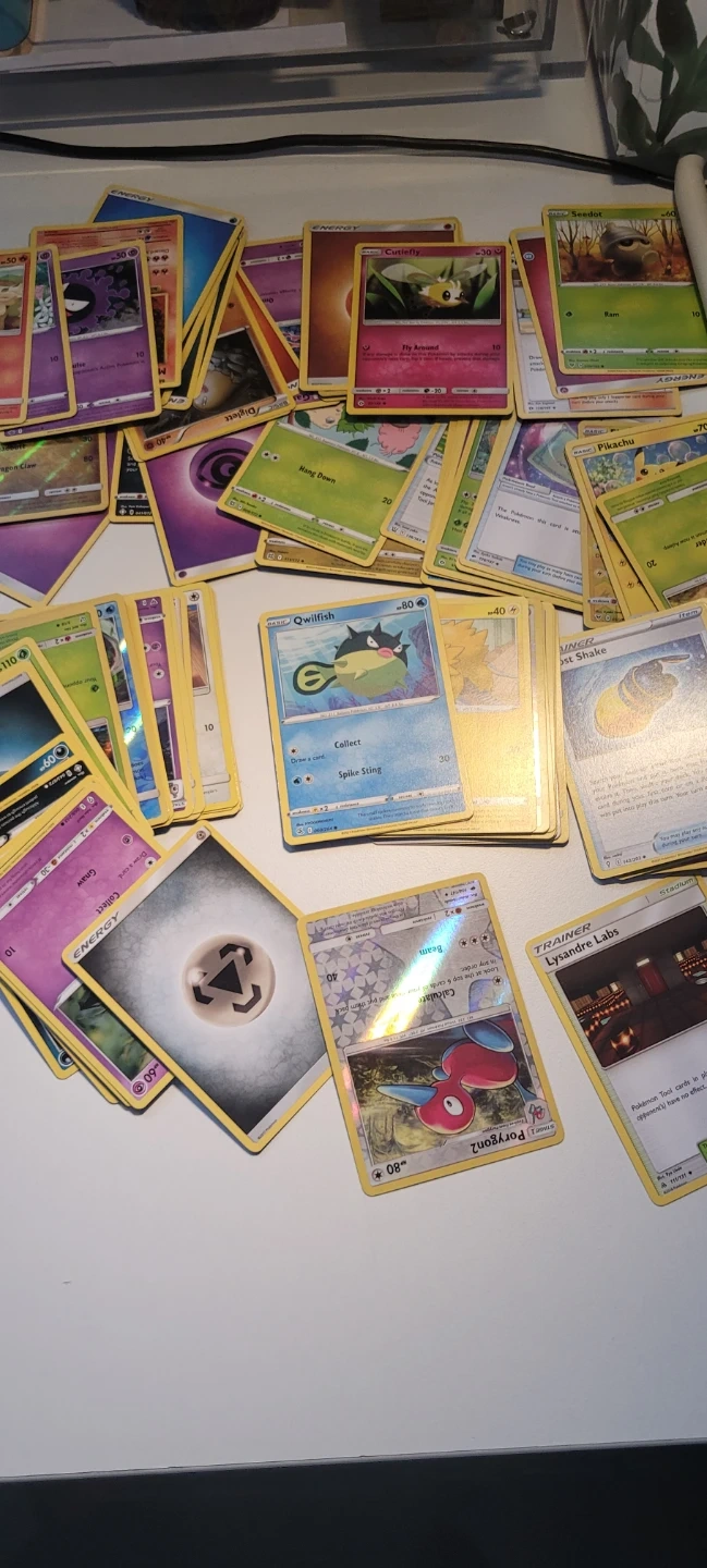 A large collection of assorted Pokemon trading cards. Includes various Pokemon characters and energy cards. These cards are great for collectors or for playing the Pokemon Trading Card Game. Theese are just my old pokemon cards with some foils in them great for your kid or you to start collecting