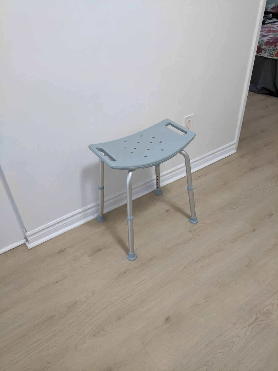 This shower chair stool is designed for safety and comfort in the bath or shower. It features adjustable height legs for a customized fit. The sturdy construction provides reliable support. Great for anyone needing a little extra stability in the washroom!