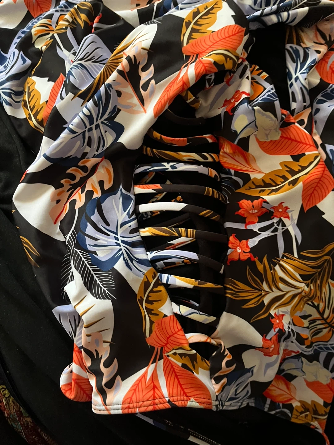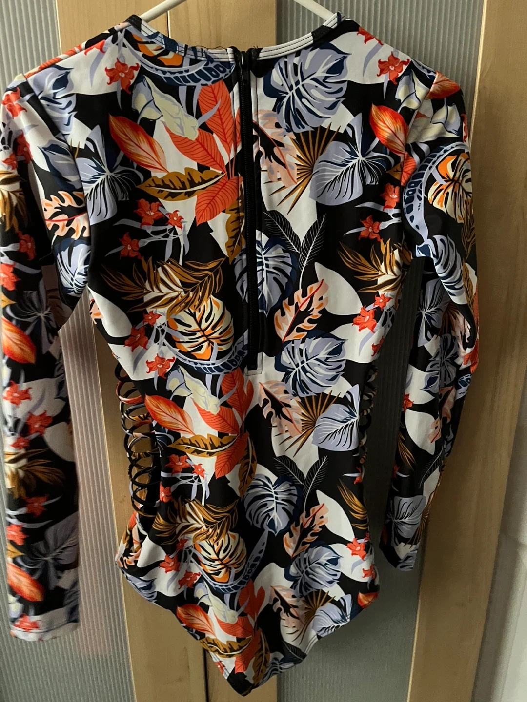 Long Sleeve Tropical Print Swimsuit, no tag, M