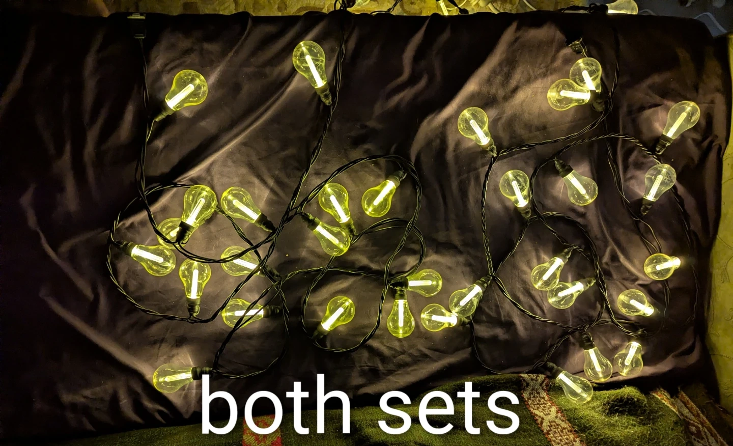 2 sets of 13ft outdoor light strings each with 20 durable, non glass, edison looking bulbs.