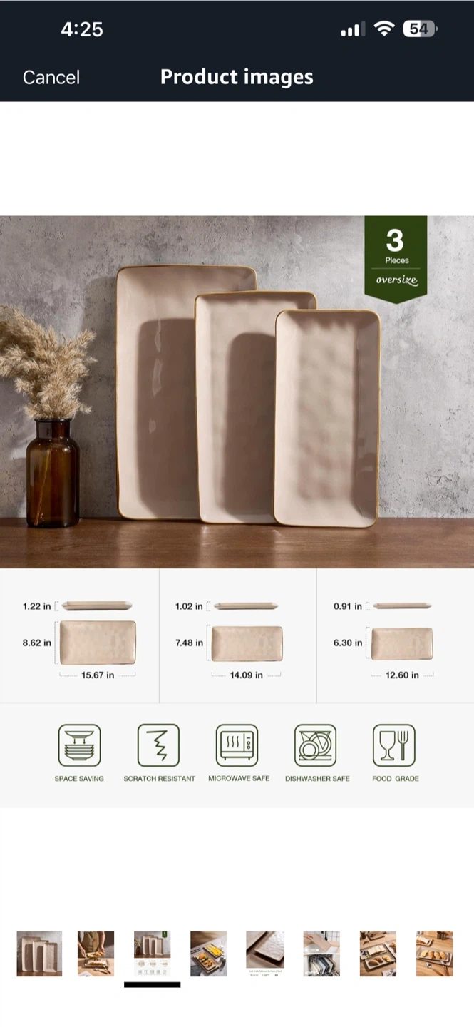 This set includes three rectangular serving platters in varying sizes. They're made from food-grade material and are microwave and dishwasher safe. These platters are great for serving appetizers, main courses, or desserts.
