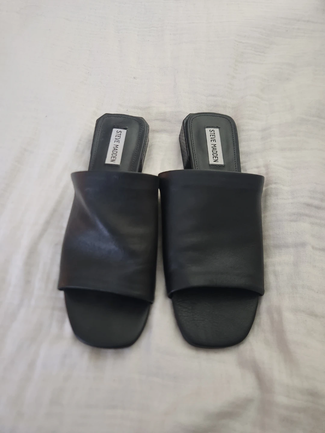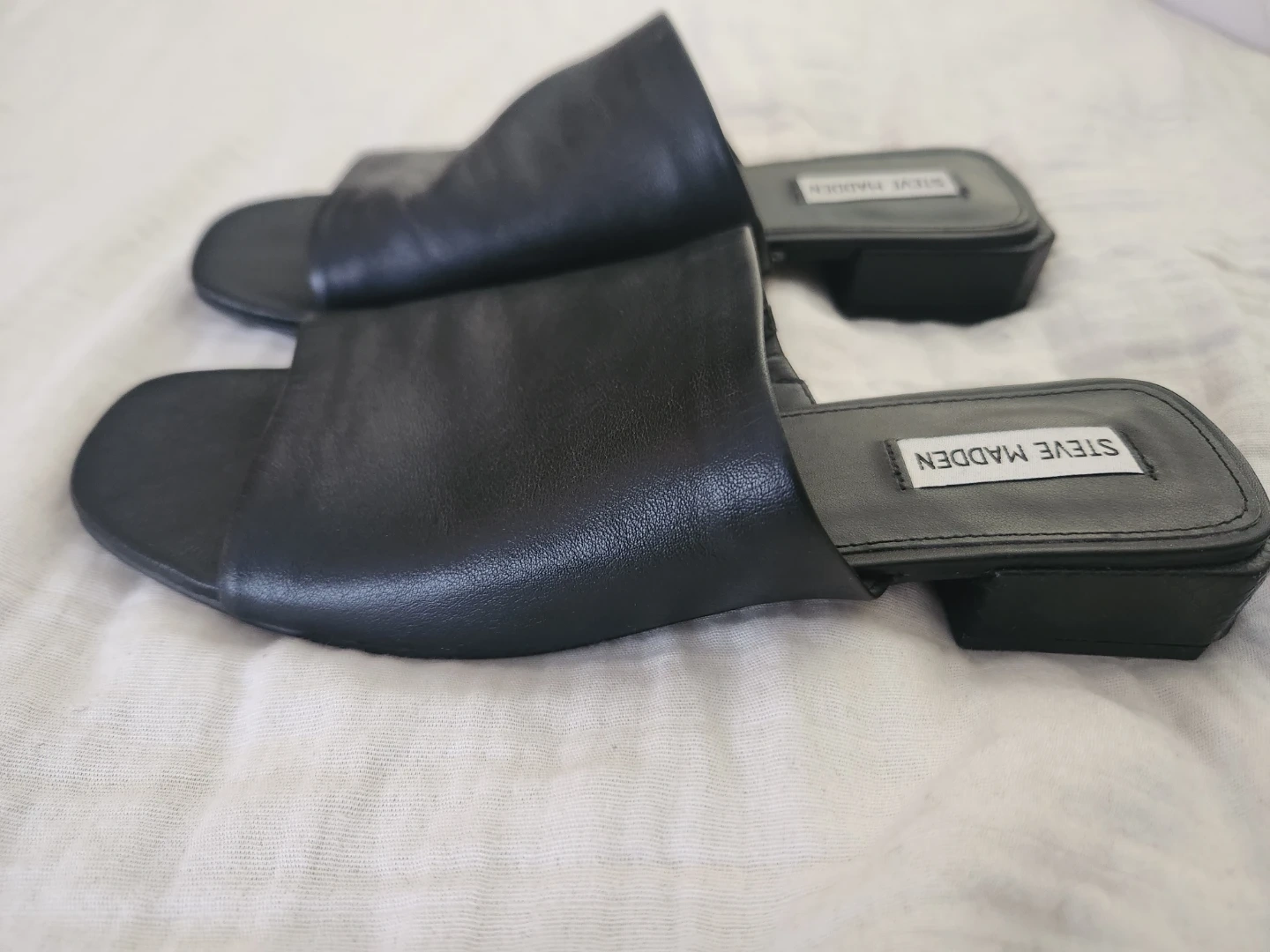 Buy & SellSteve Madden Black Leather Mules - Size 10Steve Madden Black Leather Mules - Size 10$29These Steve Madden mules are made of black leather. They're slip-on style with a block heel. Perfect for dressing up or down!ConditionNewSize10MWHERE TO MEETAncasterView MapSELLERverifiedNatashaAncaster600 reviews0 chats·0 favorites·6 viewsSEND CHAT TO SELLERHi Natasha! I’m interested in your listing.Hi Natasha! I’m interested in your listing.Get the Karrot app to chatSign In to chat
