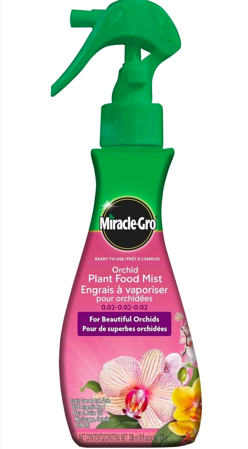Miracle-Gro Orchid Plant Food Mist comes in a ready-to-use spray bottle. It feeds orchids instantly to promote beautiful blooms. Contains 0.02-0.02-0.02 fertilizer analysis.