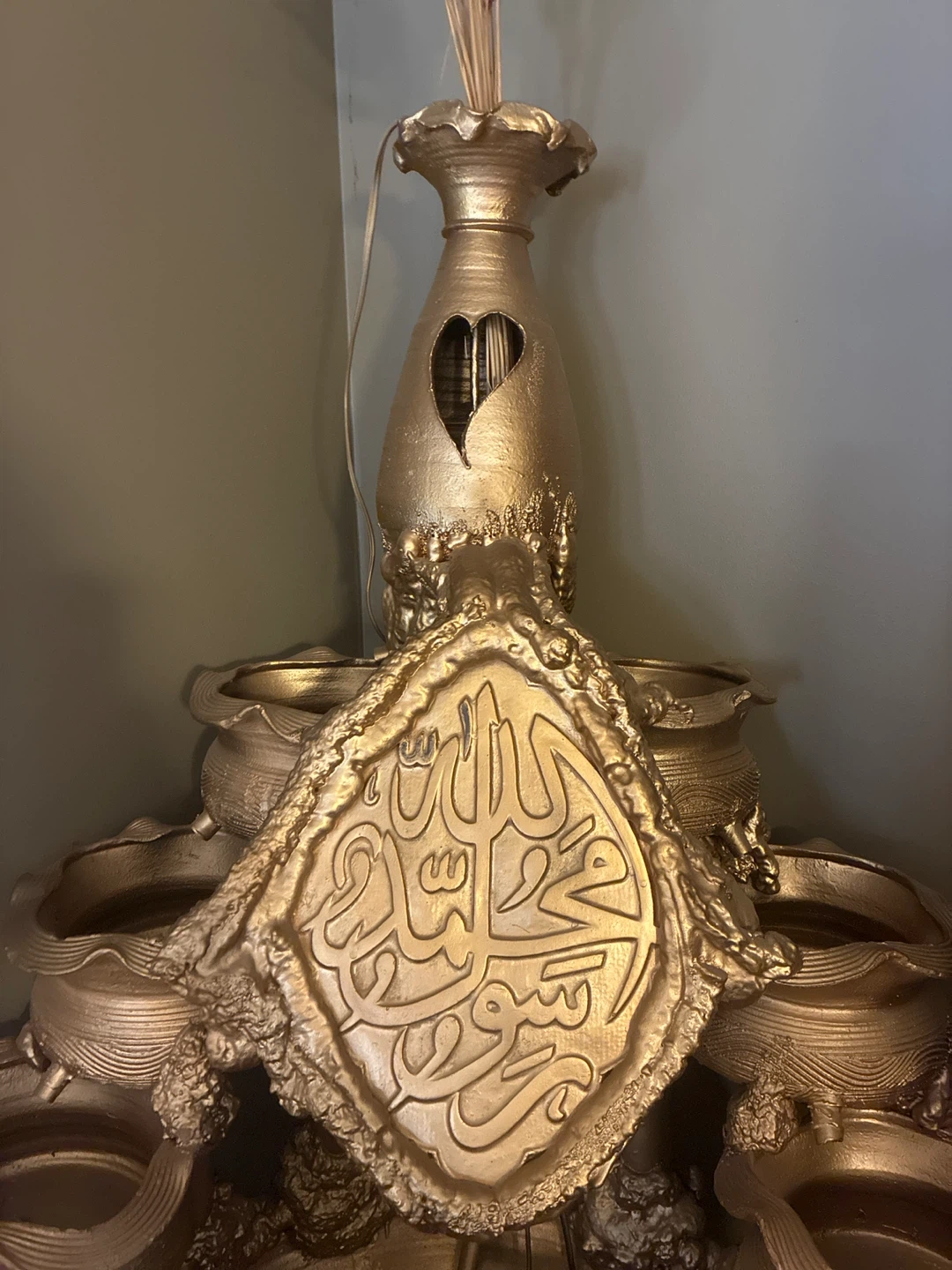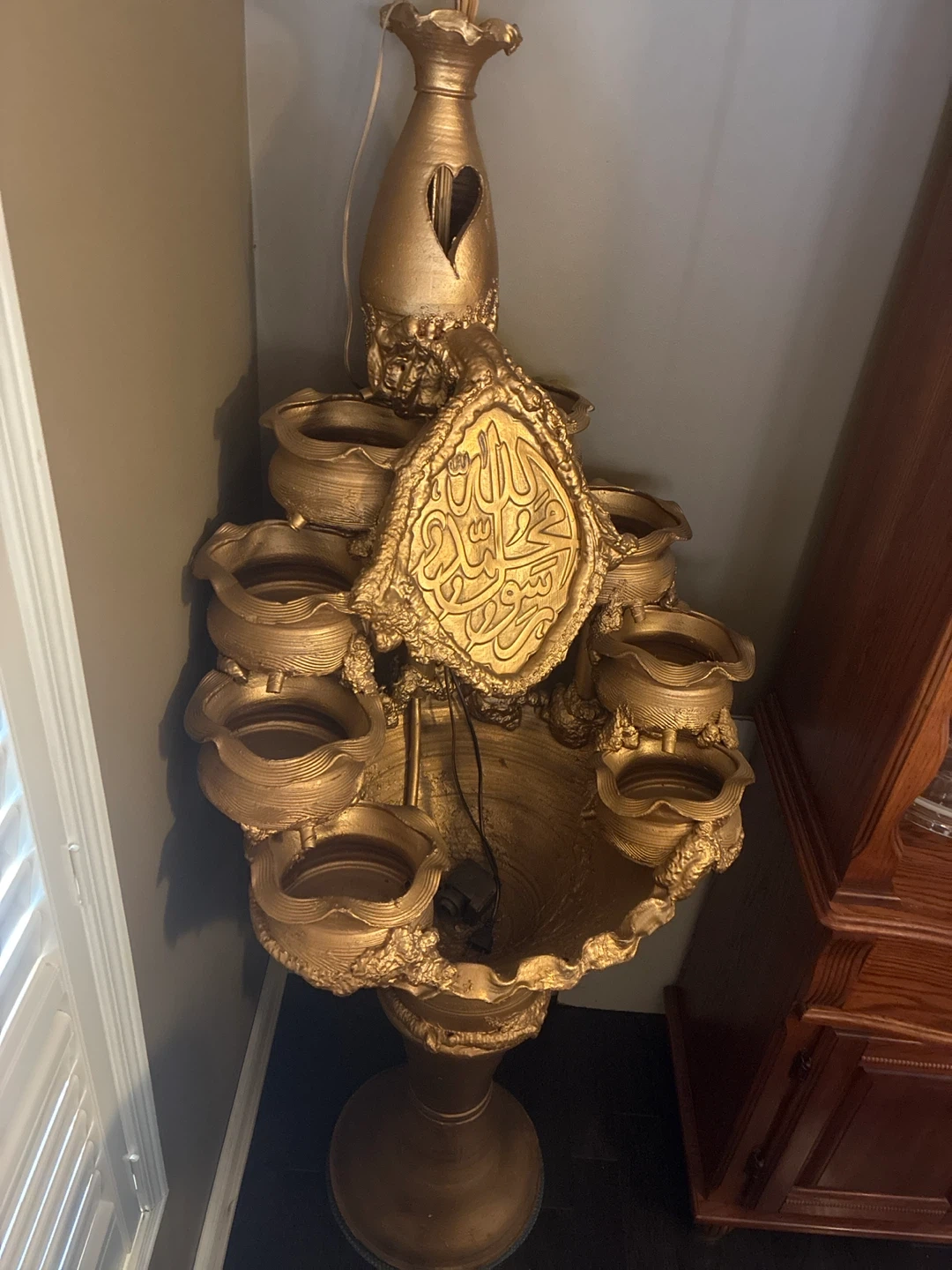 Gold Islamic Calligraphy Tiered Water Fountain