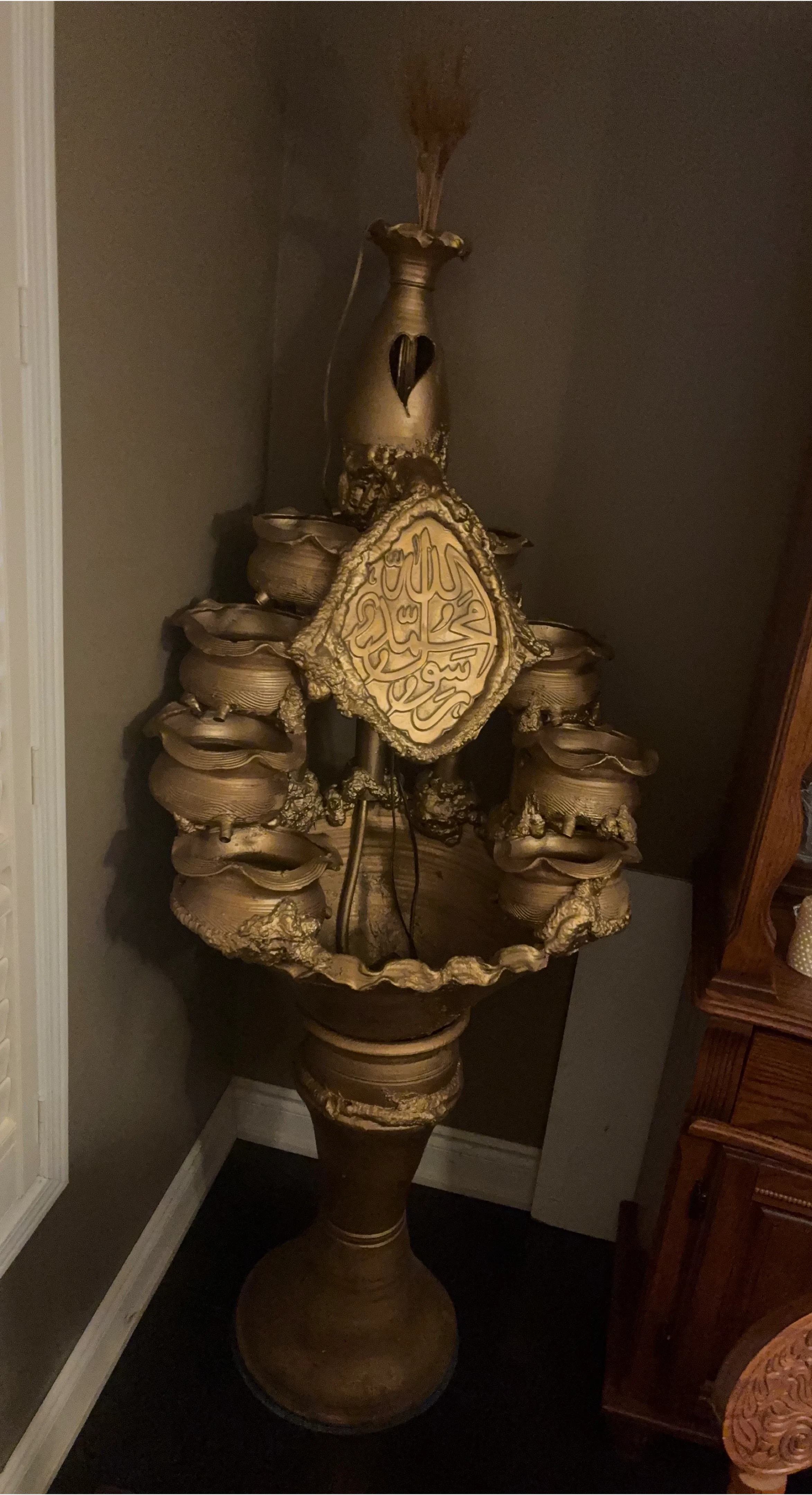 Gold Islamic Calligraphy Tiered Water Fountain