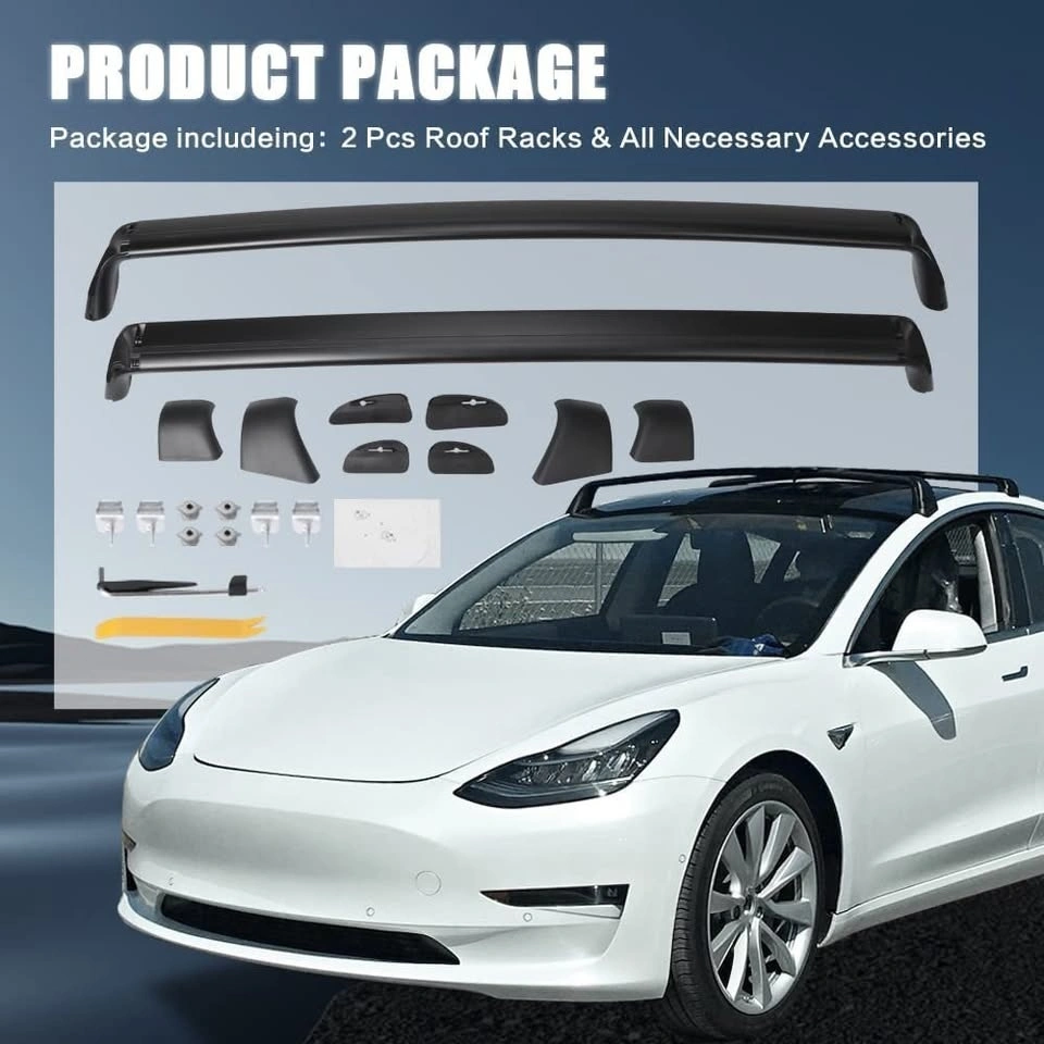 Brand new in box, complete set of crossbars compatible with the Tesla Model 3 (2017-2026) with glass roof. Not OEM.