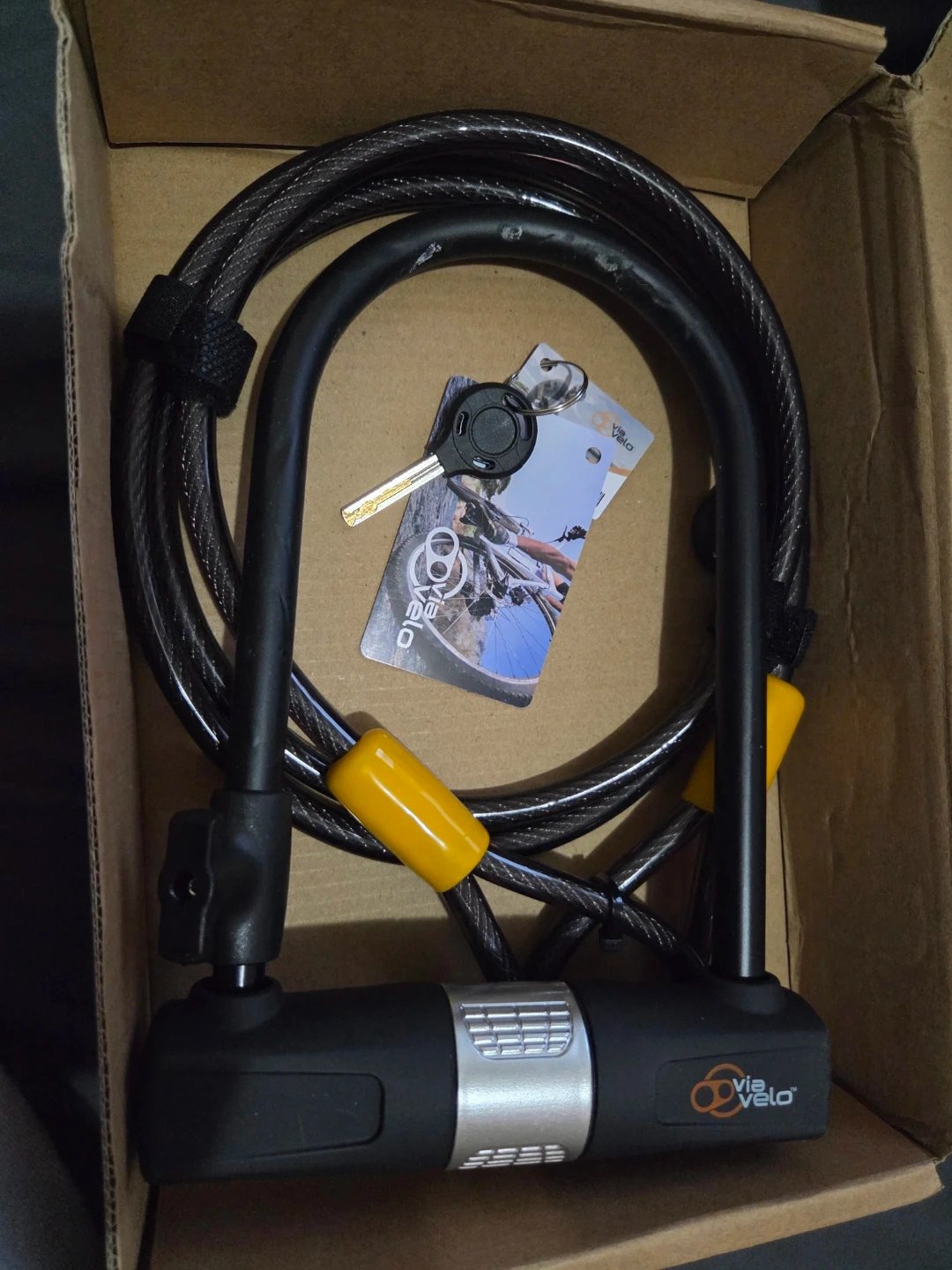 This is a Via Velo U-lock and cable set. It comes with two keys. Great for keeping your bike secure!