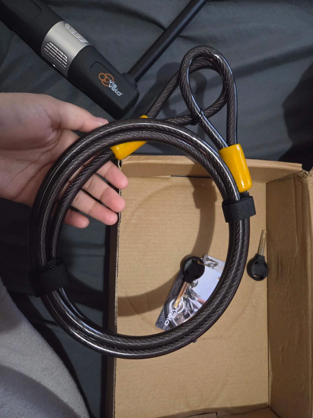 This is a Via Velo U-lock and cable set. It comes with two keys. Great for keeping your bike secure!