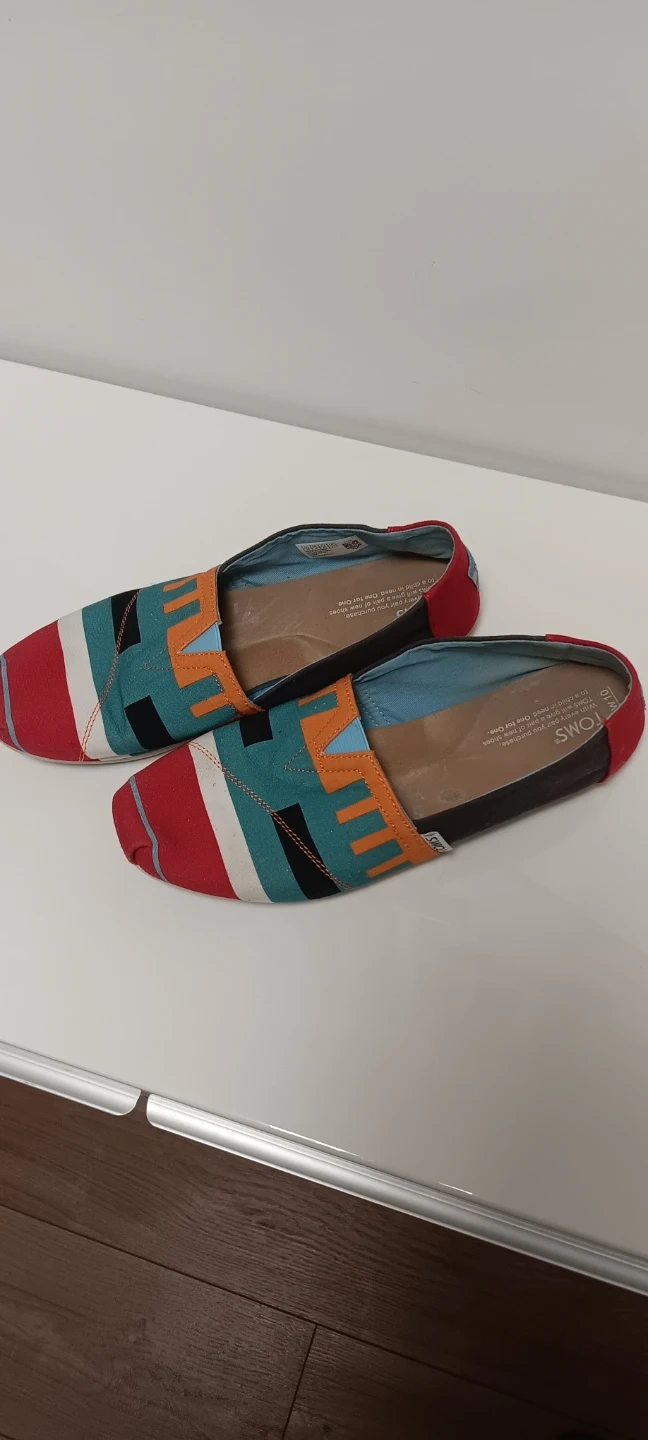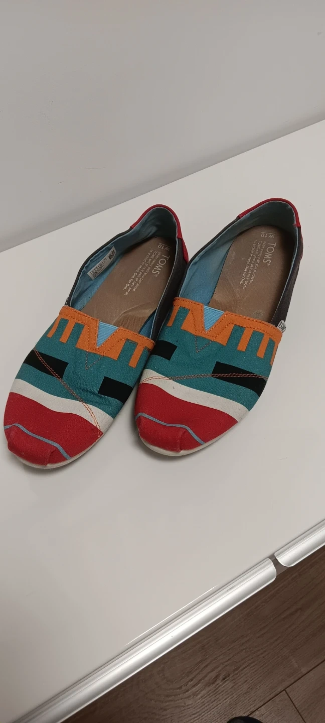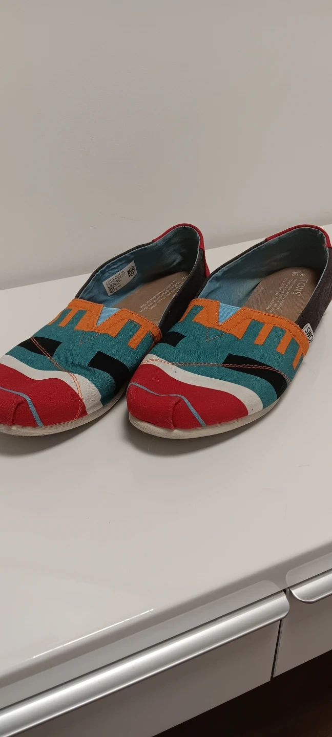 These TOMS women's Alpargata shoes feature a vibrant geometric pattern. They're made with a canvas upper and a comfortable textile lining. These slip-on shoes are great for casual wear.