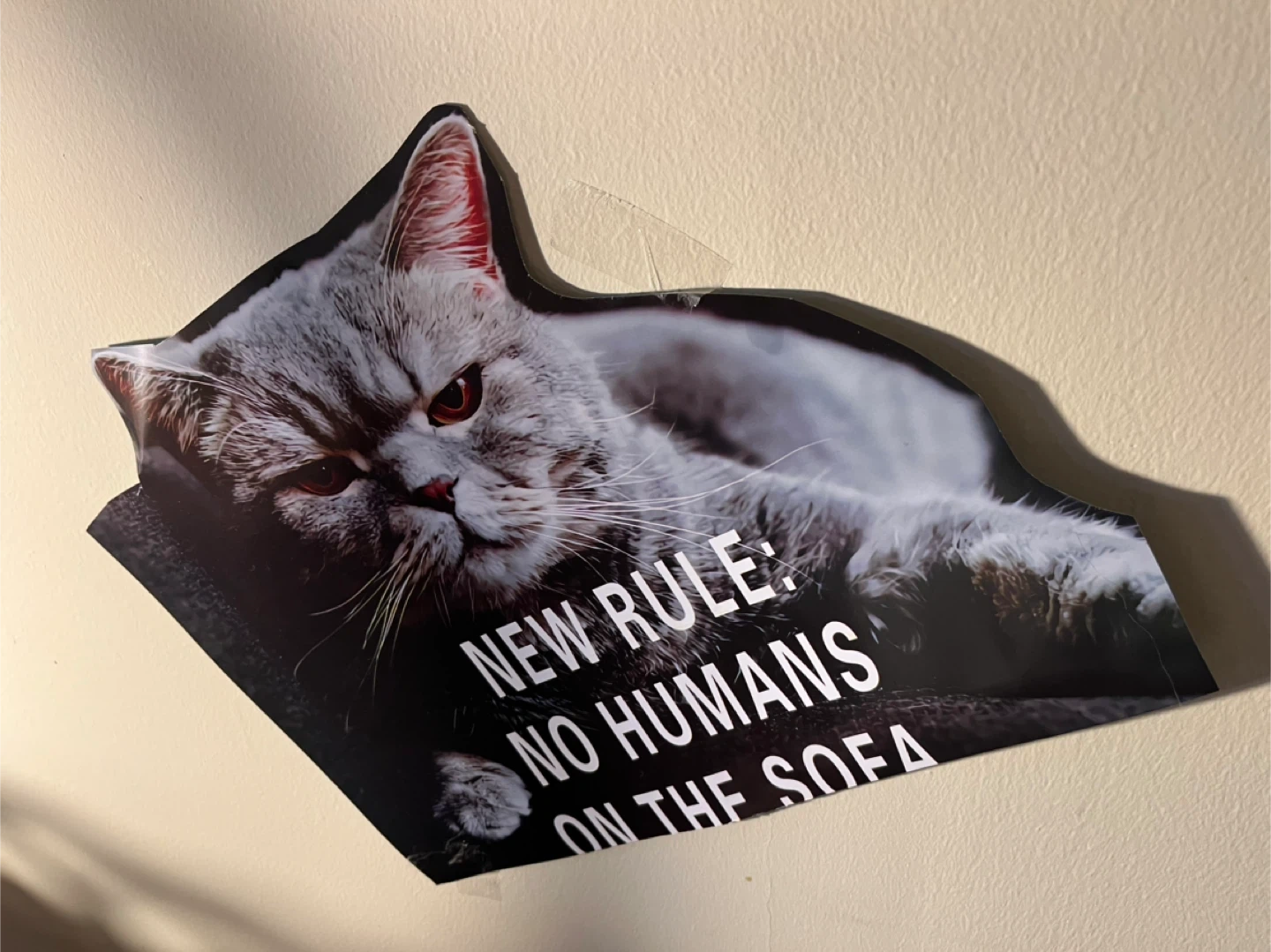 Funny Cat Sticker - New Rule: No Humans on the Sofa!