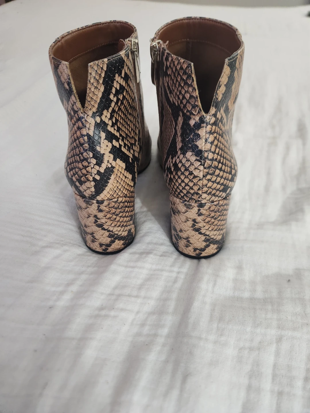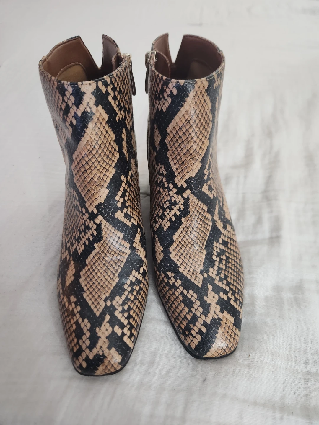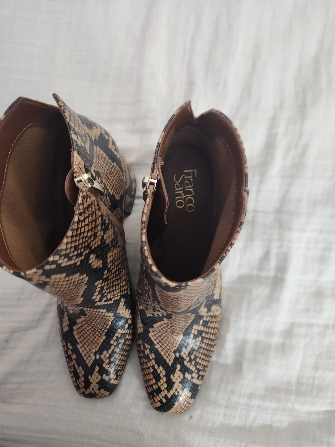 Buy & SellFranco Sarto Snakeskin Print Ankle BootsFranco Sarto Snakeskin Print Ankle Boots$46Franco Sarto ankle boots with a snakeskin print design. Side zipper closure. Block heel adds a stylish touch. Great for dressing up any outfit!ConditionNewSize9.5WHERE TO MEETAncasterView MapSELLERverifiedNatashaAncaster600 reviews0 chats·0 favorites·9 viewsSEND CHAT TO SELLERHi Natasha! I’m interested in your listing.Hi Natasha! I’m interested in your listing.Get the Karrot app to chatSign In to chat