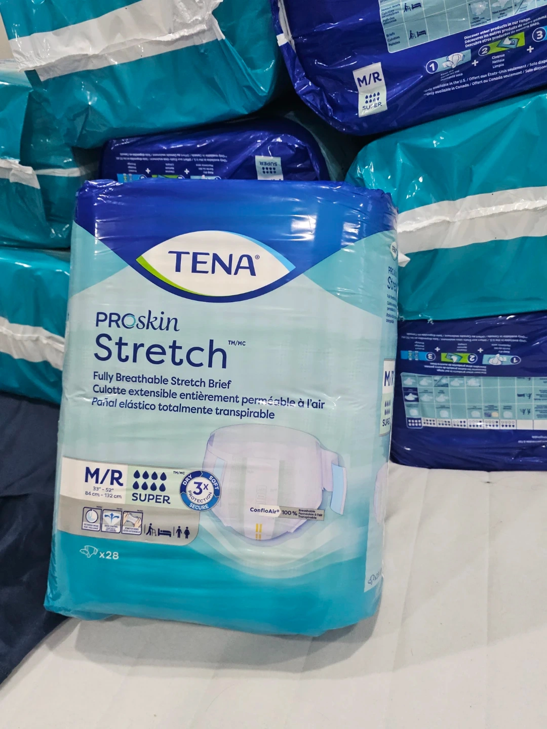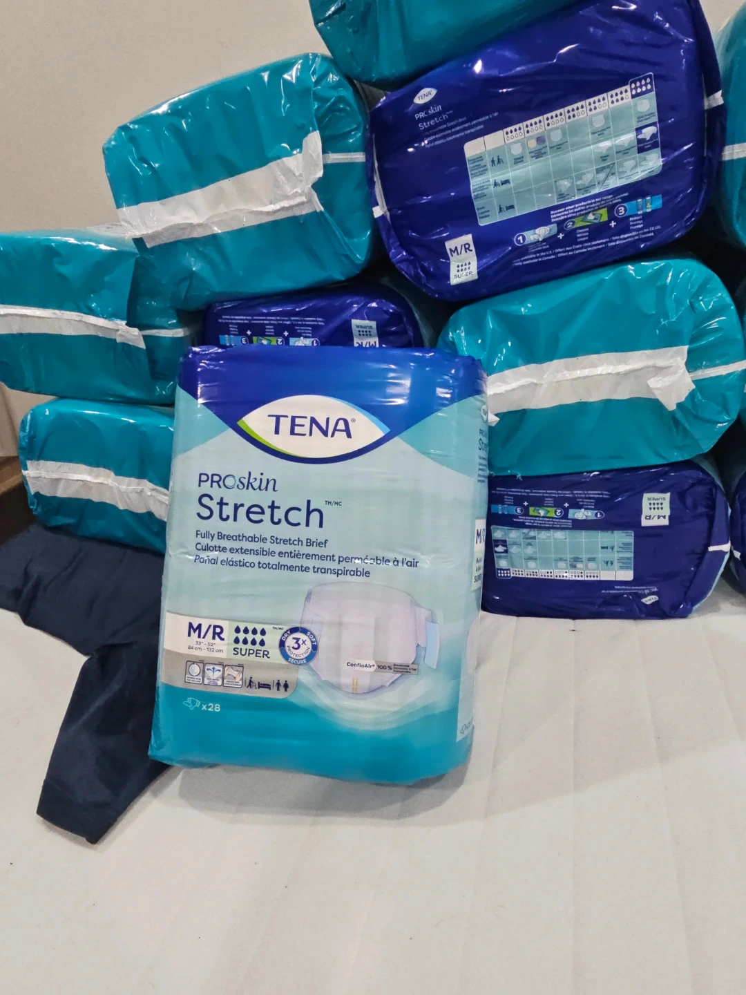 These TENA ProSkin Stretch briefs are size medium/regular. They come in packs of 28, The briefs offer fully breathable stretch coverage.Selling a pack of TENA ProSkin Stretch briefs. These are size M and are designed to be fully breathable and stretchy for comfort. They are super absorbent with 3x secure protection. Perfect for those needing reliable and discreet protection