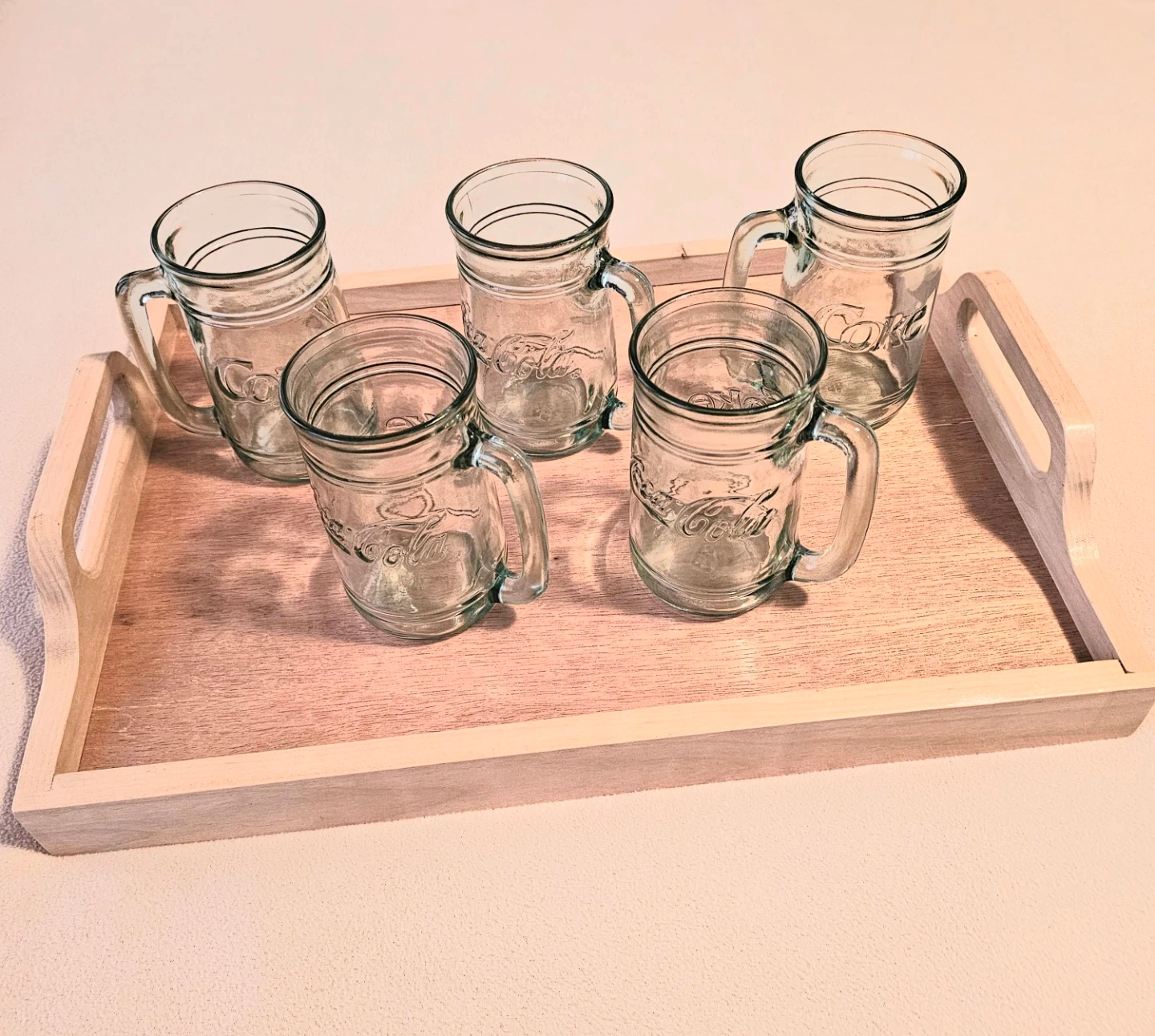 Coca-Cola Embossed Glass Mugs with Handles - Set of 5 $20