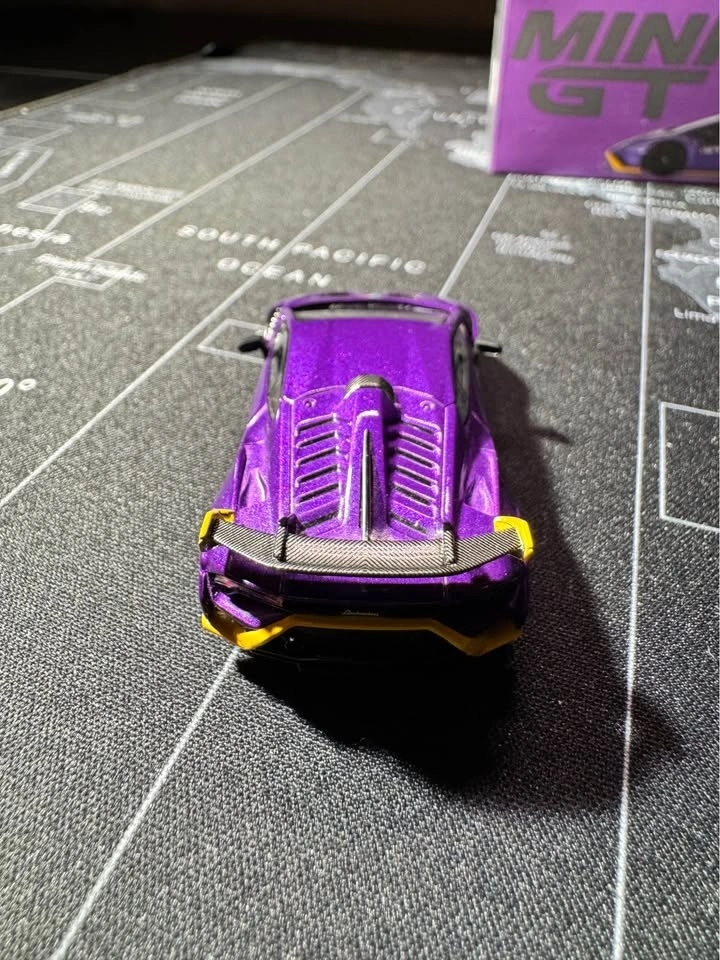 Selling a MINI GT Lamborghini Huracán STO in Viola Pasifae purple. 1:64 scale diecast model. Comes with original box. Very good condition, no visible damage. Displayed only, never played with. Authentic MINI GT release.
