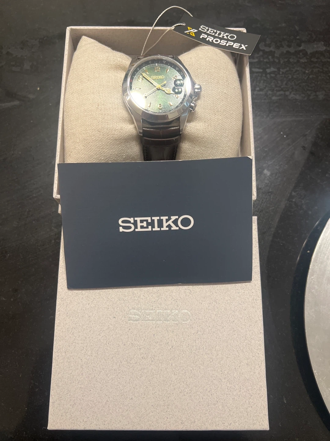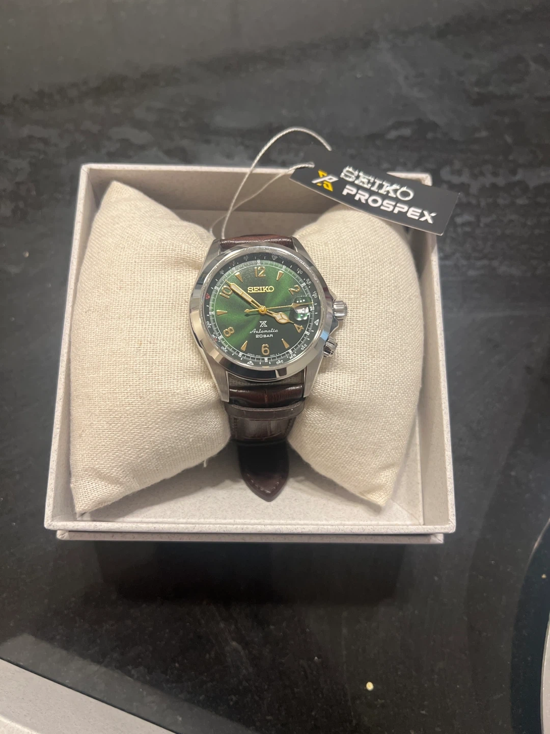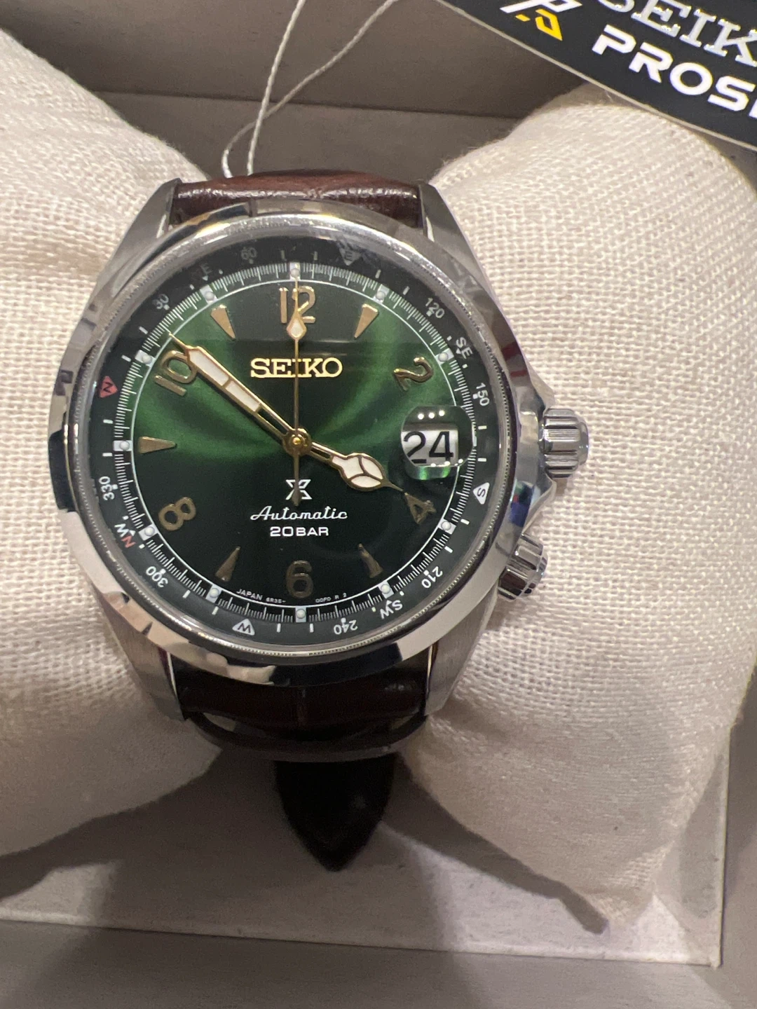Seiko Prospex Automatic Alpinist Field Compass Spb121 Leather Bracelet and Stainless Steel Case - 39.5mm Green. Comes with box, papers and warranty. Price is firm. Please do not message to negotiate or trade. Thanks.