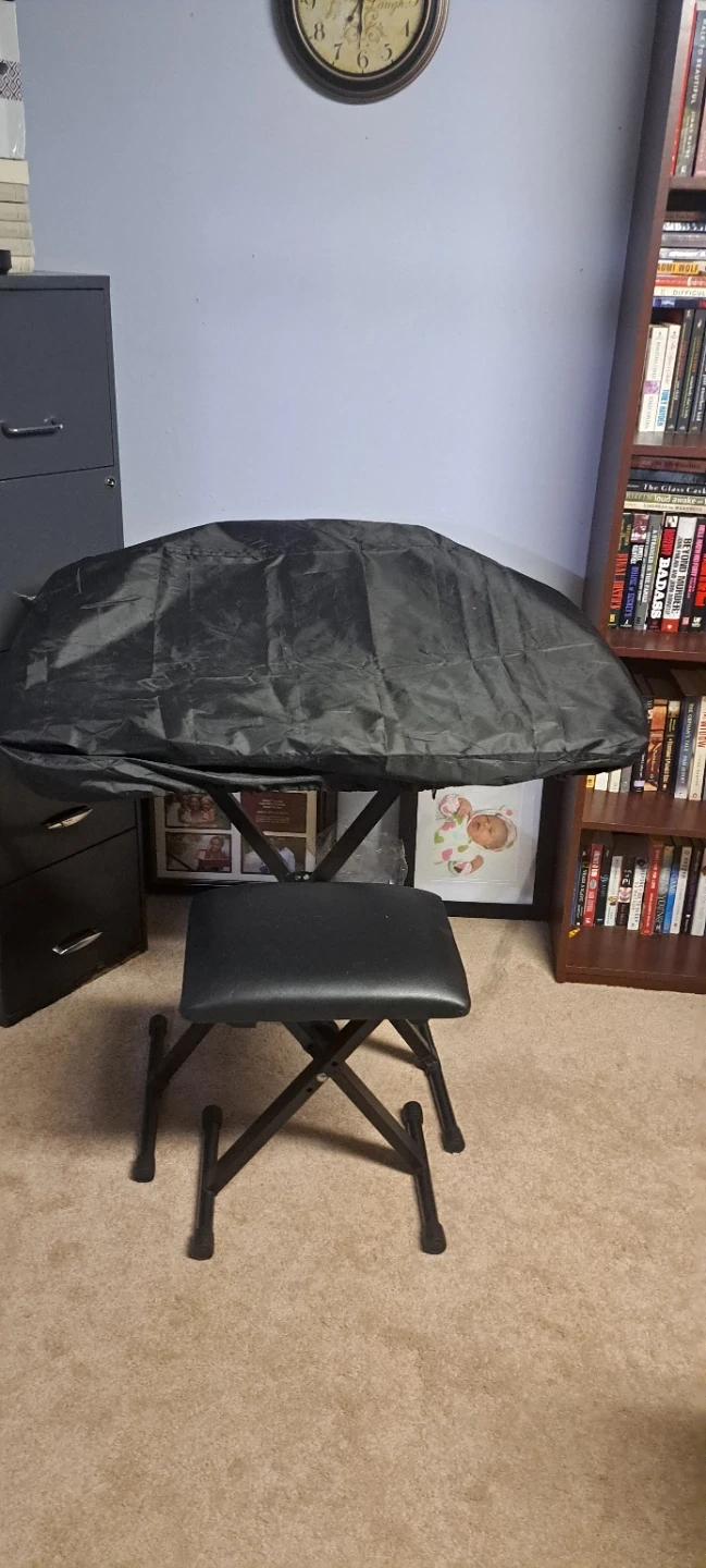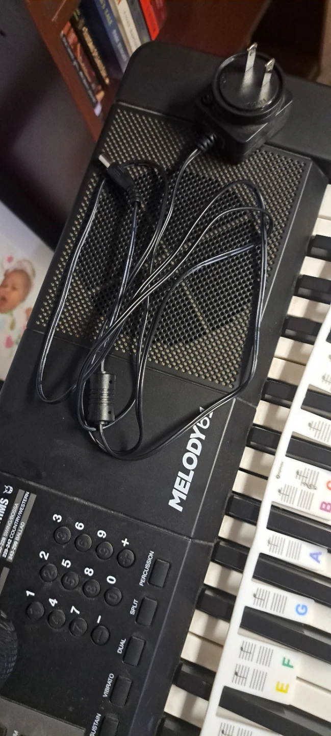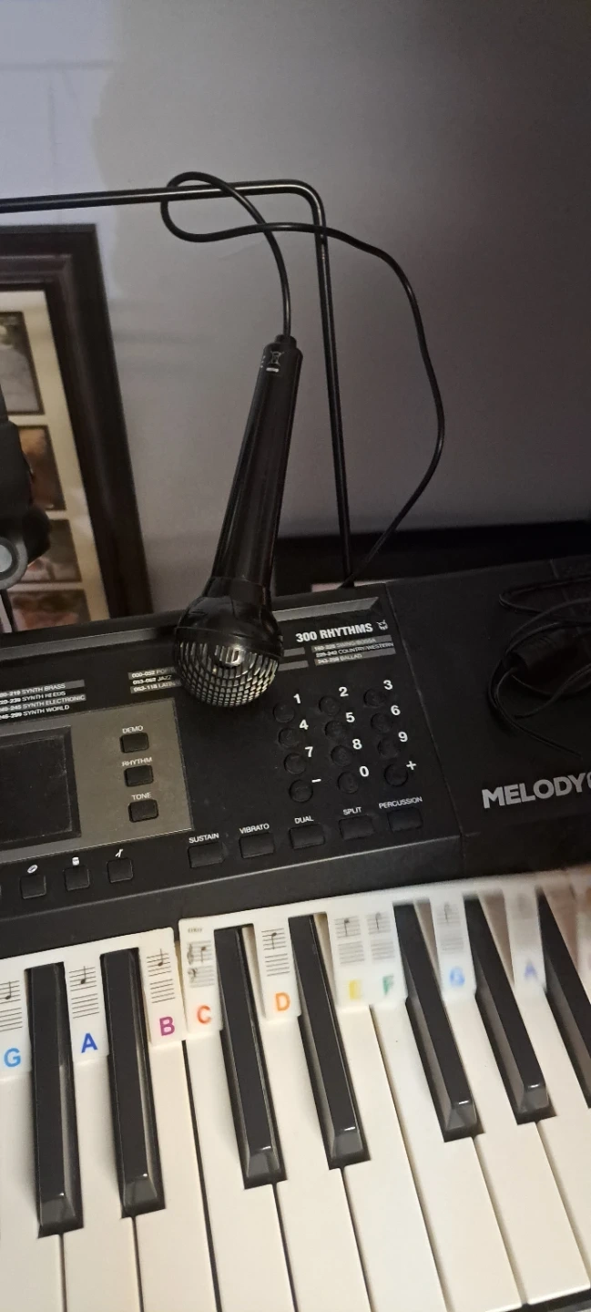 This Alesis Melody 61-key keyboard is perfect for beginners! It includes a microphone for singing along and a pair of headphones for private practice. The keyboard has 300 rhythms and sounds, plus it comes with a power adapter and stand.