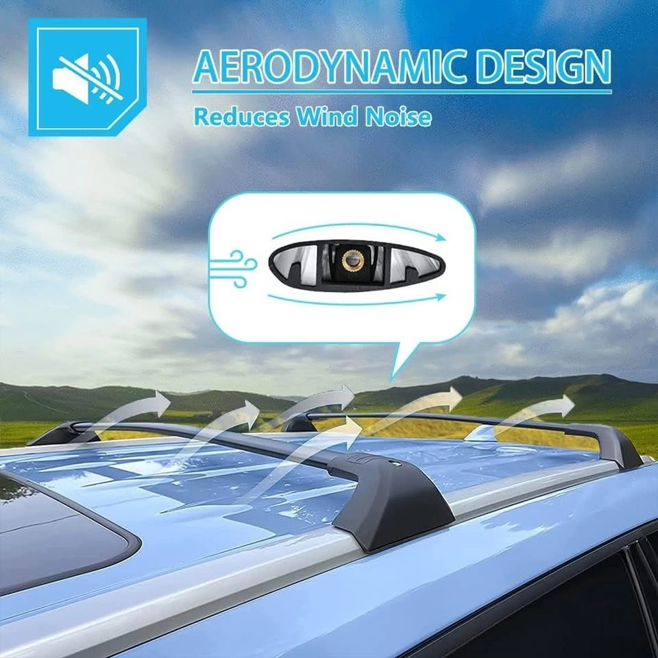Aerodynamic bar design, rated for 260 pounds. I also have crossbars for other cars, cargo boxes, cargo baskets, and kayak carriers.