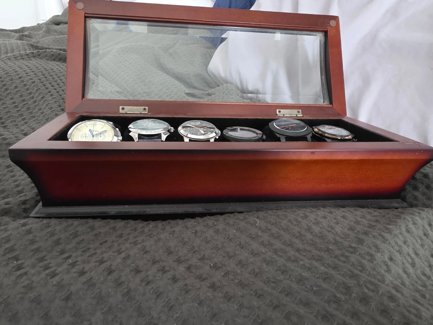 Buy & SellWatch Display CaseWatch Display Case$35Wooden watch display case with a glass lid. Holds up to six watches. Perfect for organizing and showcasing your timepiece collection!WHERE TO MEETFortino plazaView MapSELLERverifiedMarkBramalea N Ind1197 reviews0 chats·0 favorites·17 viewsSEND CHAT TO SELLERHi Mark! I’m interested in your listing.Hi Mark! I’m interested in your listing.Get the Karrot app to chatSign In to chat