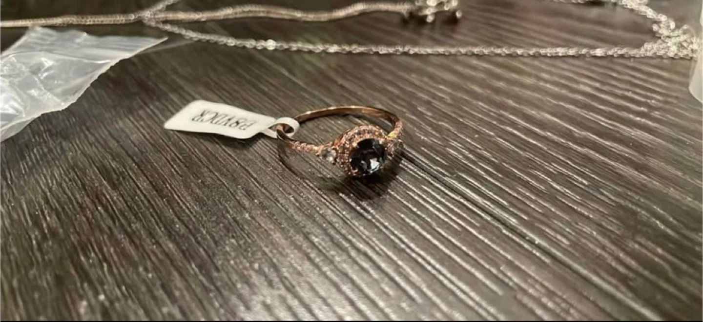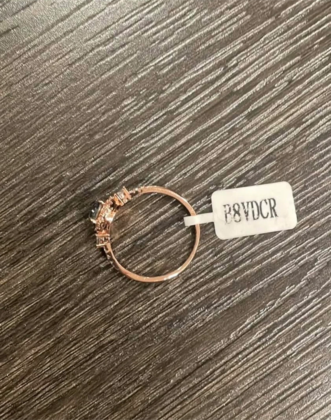Rose Gold Halo Ring with Dark Center Stone