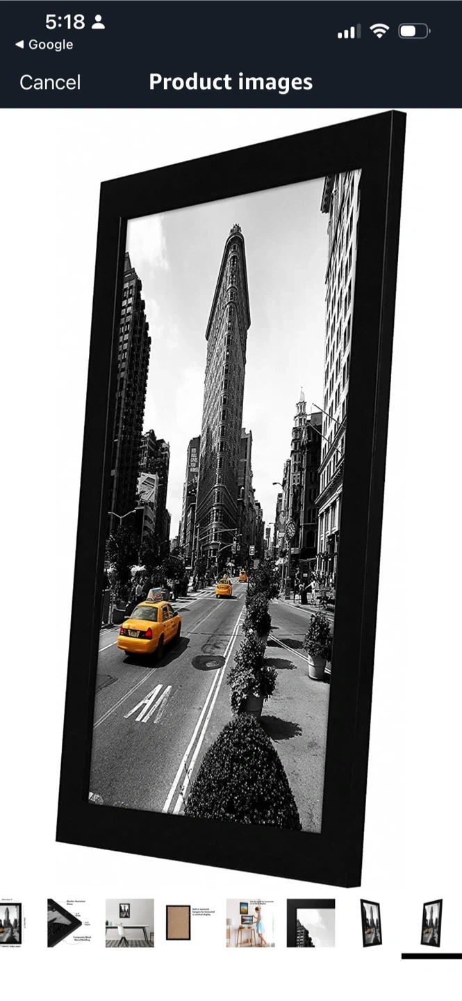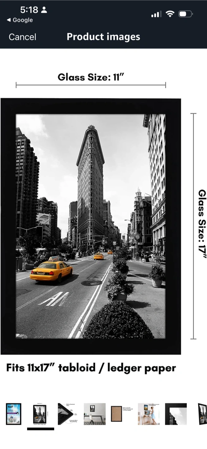 This is a black picture frame for displaying photos or art. It fits an 11x17 inch print. The frame is made of wood material. It's great for showcasing memories!