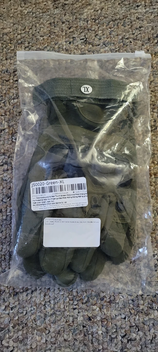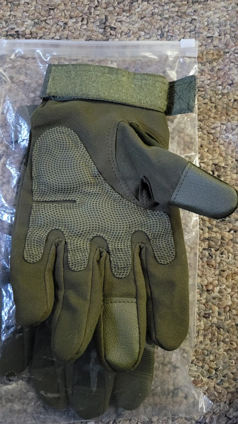 These are XL green tactical gloves. They have knuckle protection and a textured palm for grip. Made for outdoor use. New never used needed bigger size.Great for airsoft or paintball.