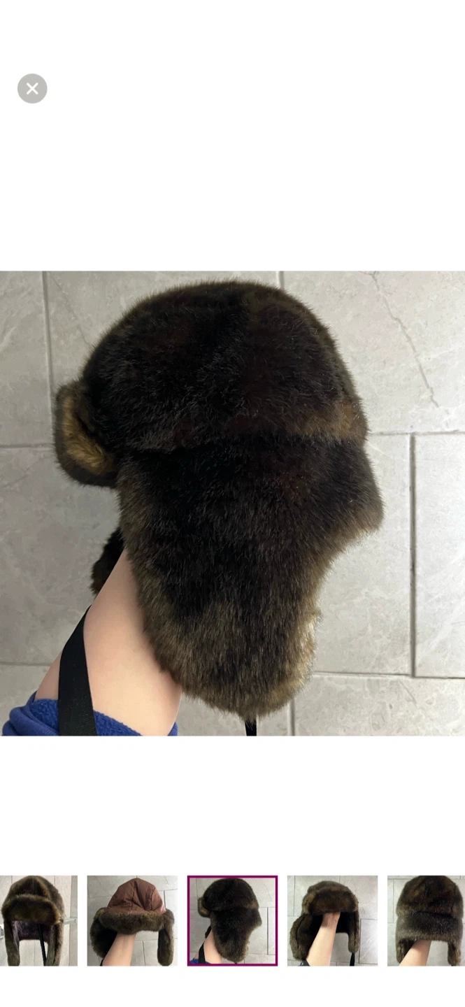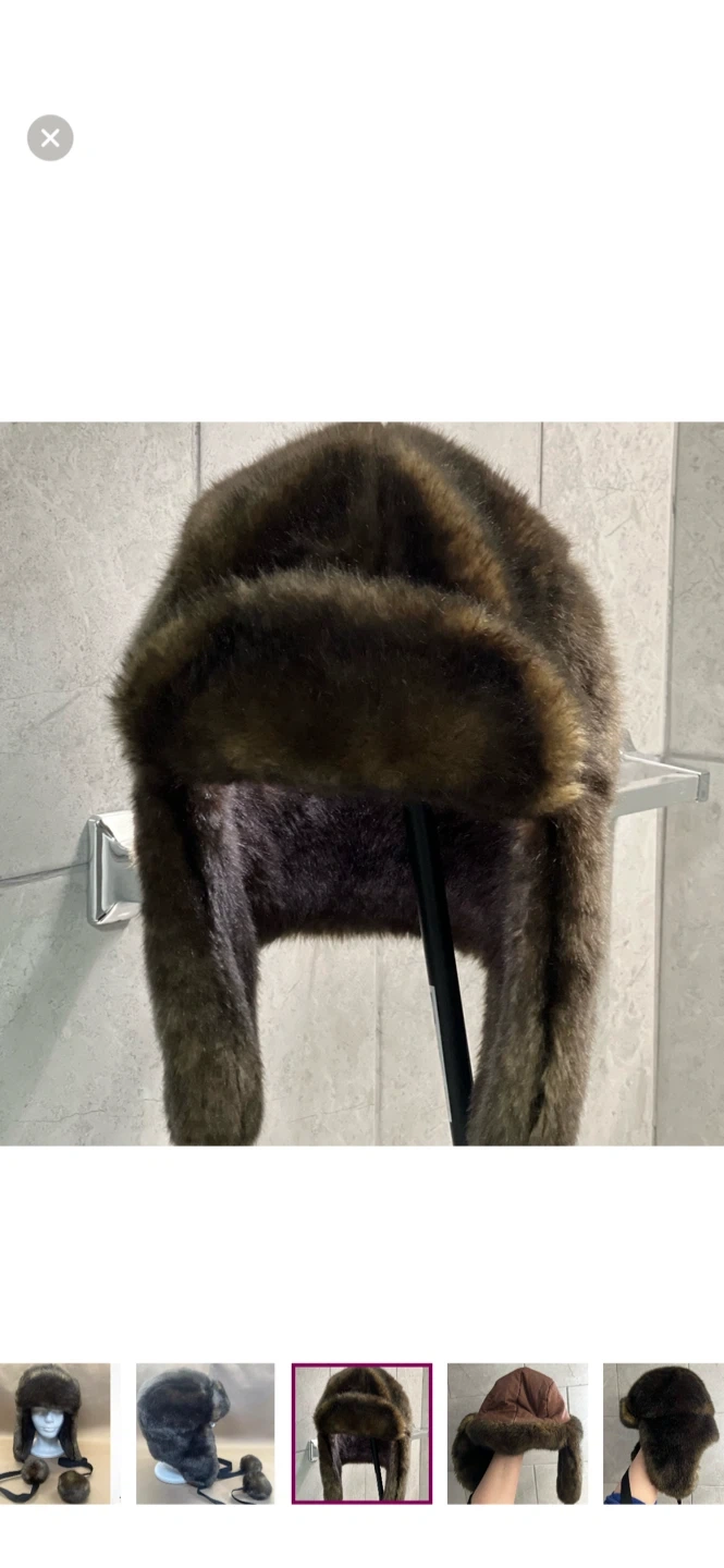 This trapper hat is designed for warmth and style. It features a faux fur exterior and lining for cozy comfort. The ear flaps can be tied up or fastened under the chin for versatile wear.