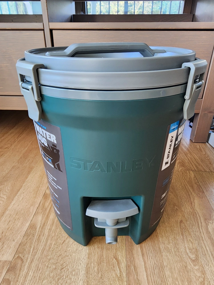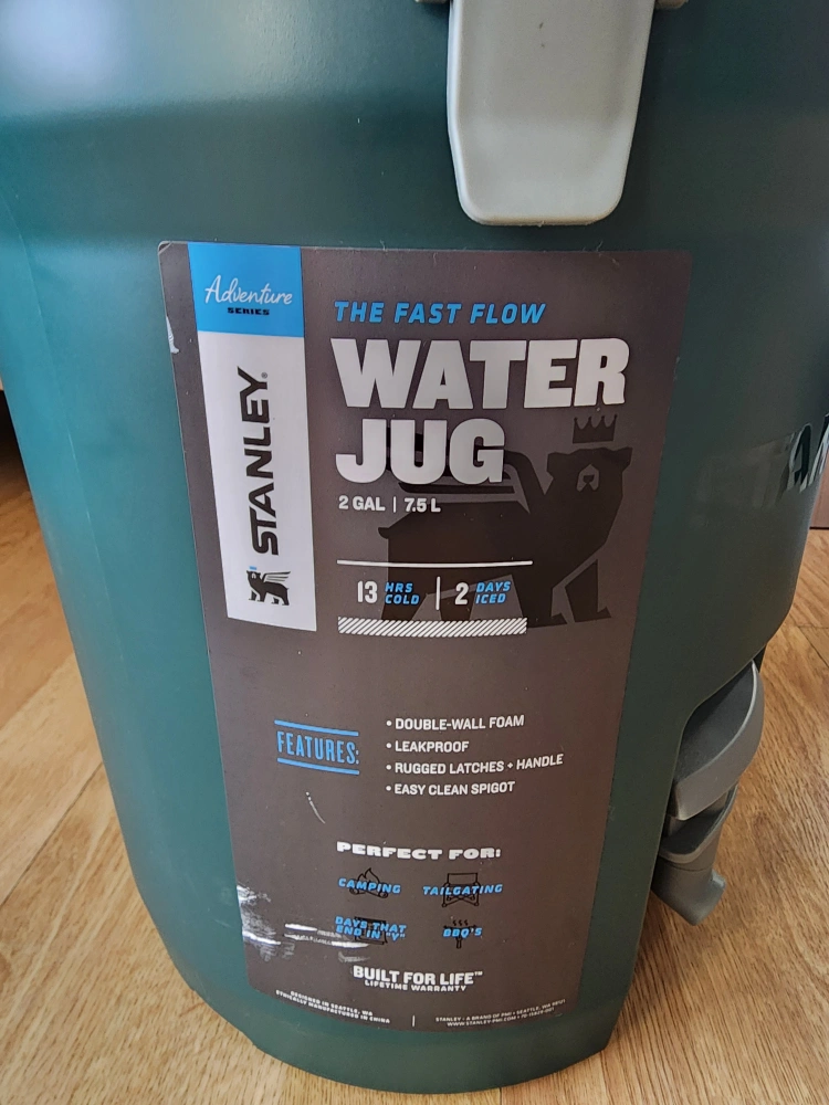Brand New Stanley The Fast Flow Water Jug with a 2-gallon or 7.5-litre capacity. It features double-wall foam insulation, is leakproof, and has rugged latches with a handle and an easy-clean spigot. This jug keeps drinks cold for 13 hours and iced for 2 days. Great for camping and tailgating!