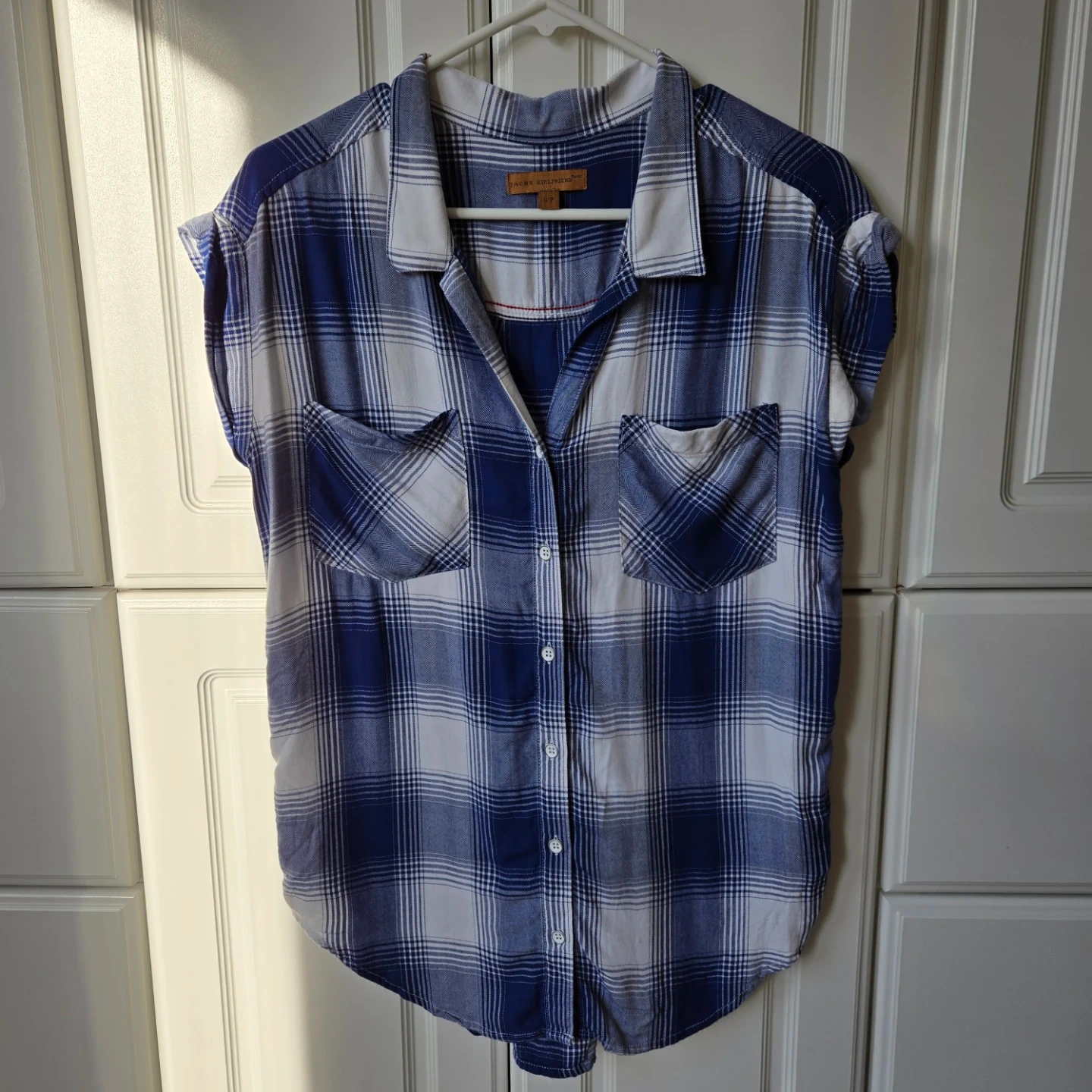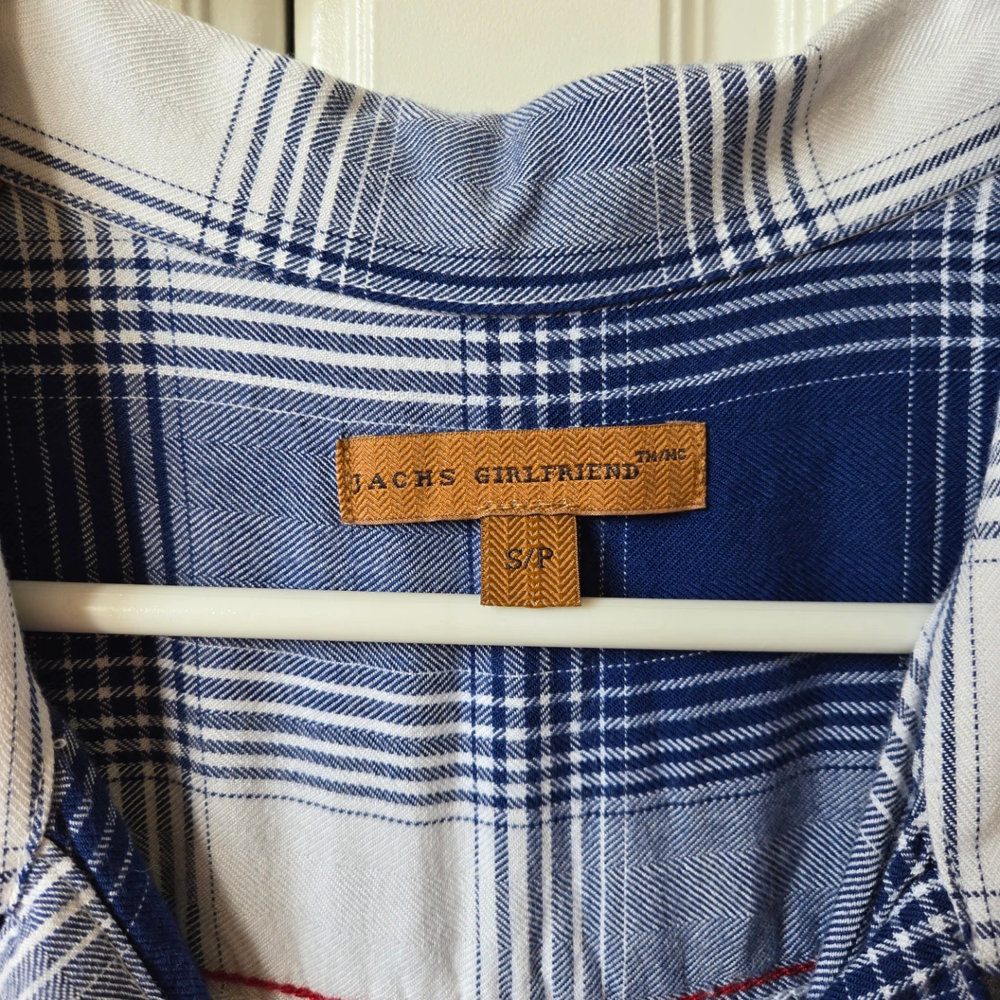 Buy & SellJachs Girlfriend Plaid Shirt - Size S/PJachs Girlfriend Plaid Shirt - Size S/P$5Blue and white plaid short-sleeve button-up shirt. 100% rayon material. Made in Vietnam. This shirt is a size S/P.ConditionLike newSizeSmallWHERE TO MEETCheck LocationView MapSELLERverifiedAmyFairfield750 reviews0 chats·0 favorites·9 viewsSEND CHAT TO SELLERHi Amy! I’m interested in your listing.Hi Amy! I’m interested in your listing.Get the Karrot app to chatSign In to chat