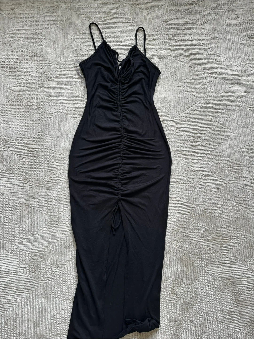 Black Ruched Bodycon Midi Dress