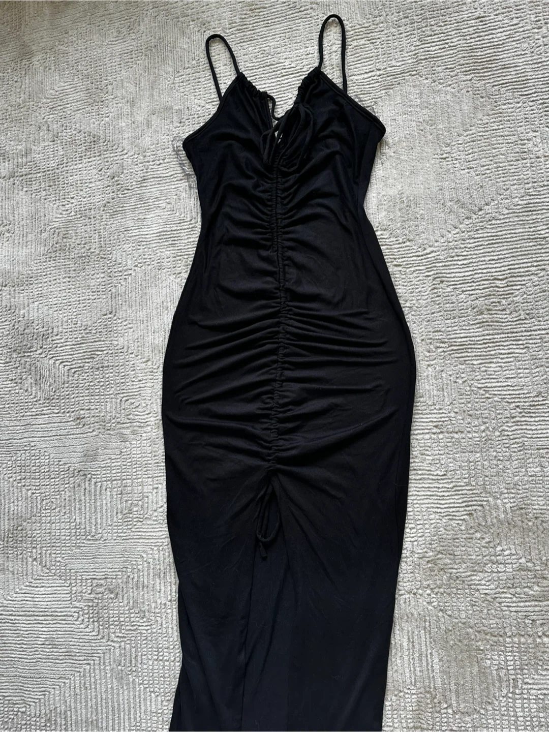 Black Ruched Bodycon Midi Dress