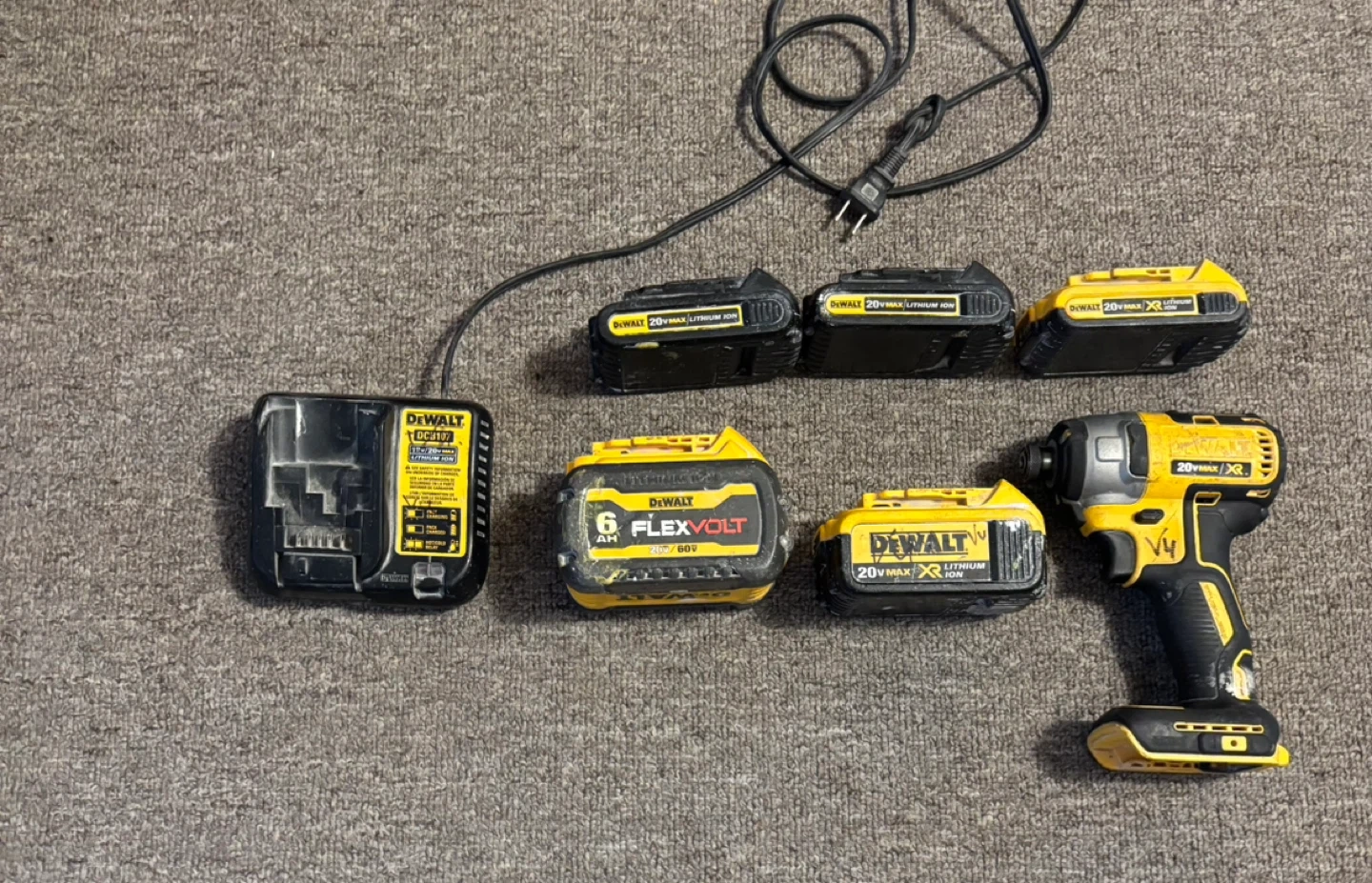 Includes DeWalt 20V MAX XR impact driver and charger. Comes with three 20V MAX Lithium Ion batteries (one 6.0 Ah Flexvolt, two 2.0 Ah). Ideal for home renovators and DIYers tackling various fastening tasks. It's ready for your next project!