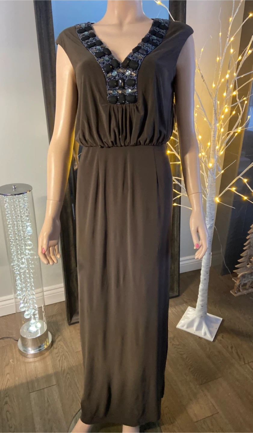 NWT: Alex & Eve Brown Embellished Maxi Dress Size 6