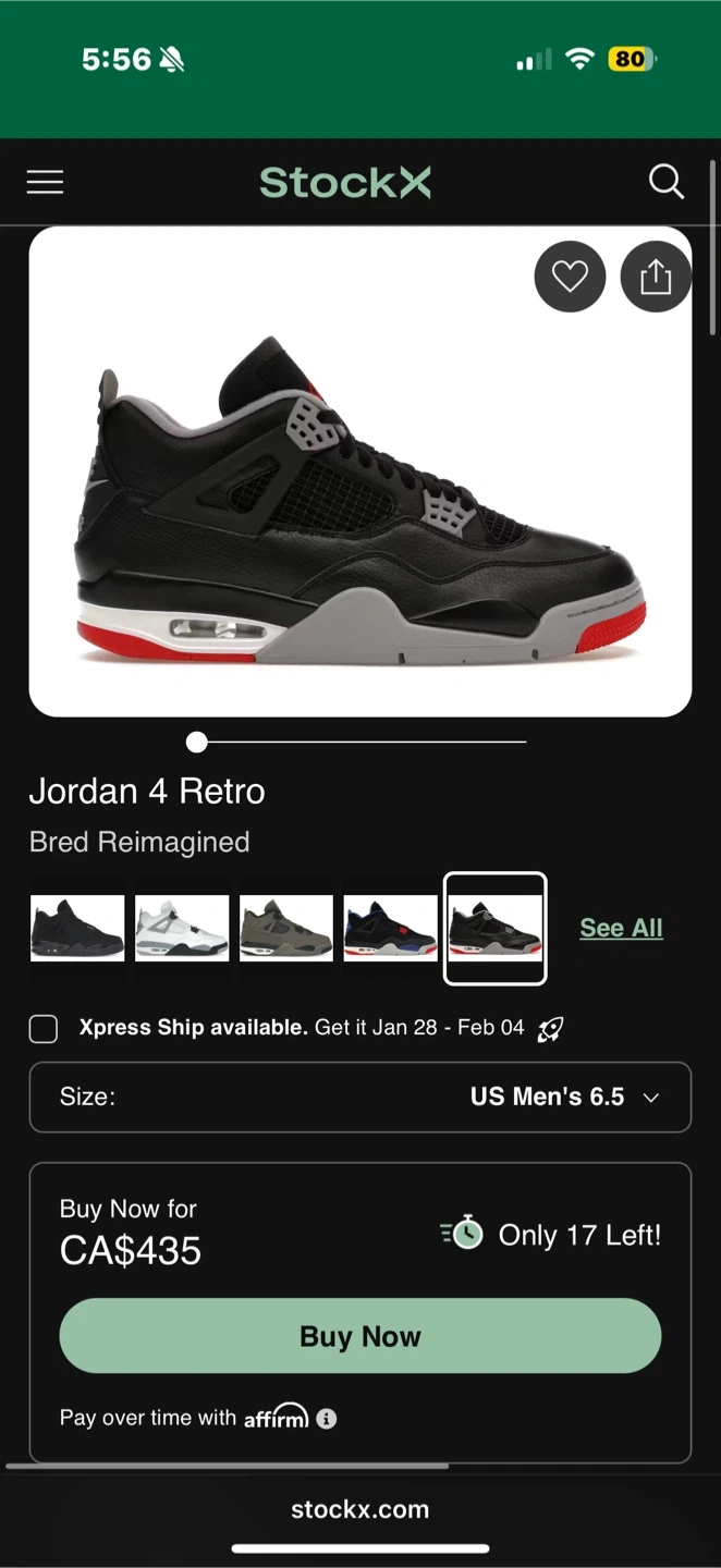Air Jordan 4 Retro Bred Reimagined Men's US 6.5