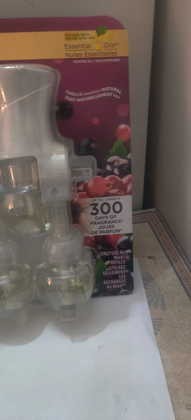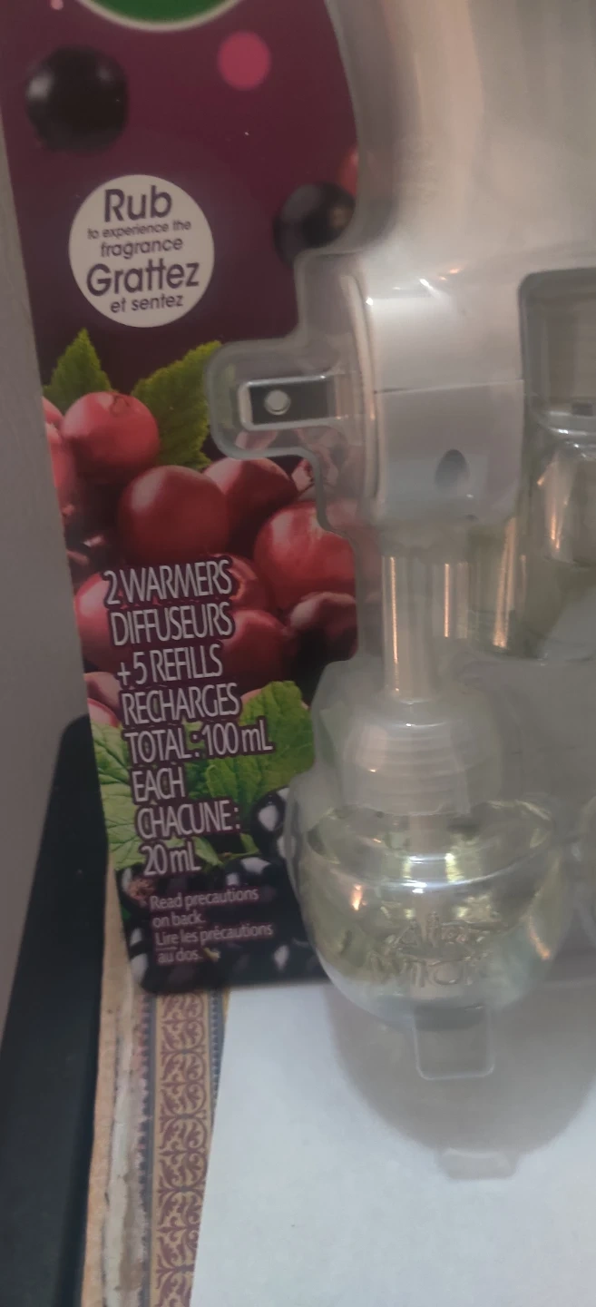 This Air Wick starter kit includes 2 warmers and 5 refills. Each refill contains 20 ml of Ripe Cranberry & Currants scent. Enjoy up to 300 days of fragrance!