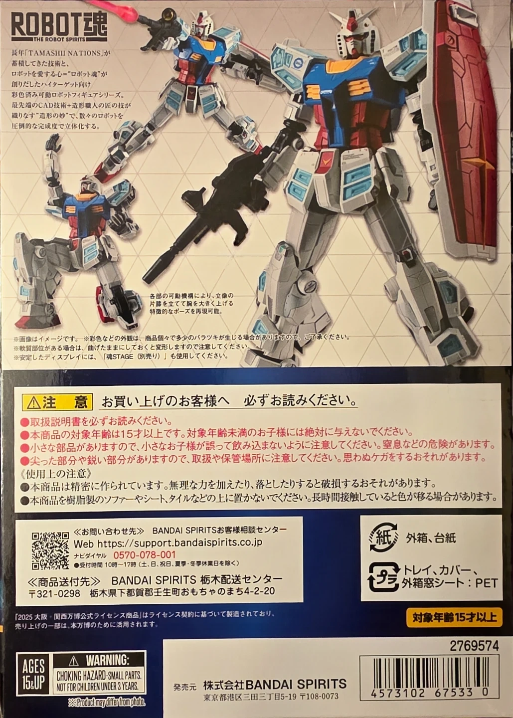 This is the Robot Spirits RX-78F00 Gundam figure (Osaka Gundam Expo), designed by Tamashii Nations. It boasts high-precision robot figures for the adult market. The figure features solid, smooth, and realistic materials, offering an unparalleled level of detail. It's built to the standard of robot figures.