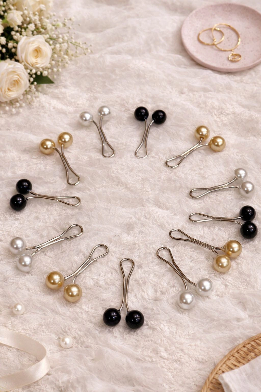 This set of elegant pearl hijab pins blends functionality with timeless charm. Designed to secure your hijab effortlessly without snagging, each pin adds a subtle touch of sophistication making everyday styling easy and refined. Only $1 for 3 pins, a must-have essential for every hijab collection.