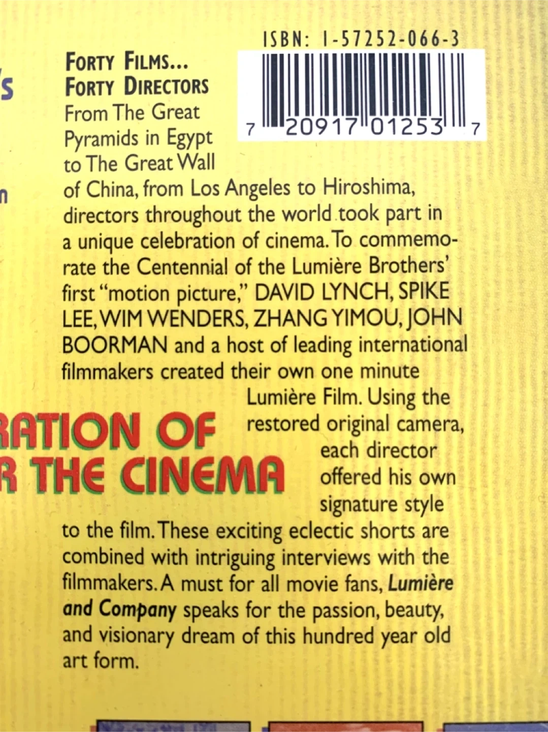 This collection features "Intriguing Short Films from 40 of the World's Leading Directors" for the Centennial of the Lumière Brothers' first motion picture. It includes 88 minutes of documentary content in English and French with English subtitles. A must for all movie fans!