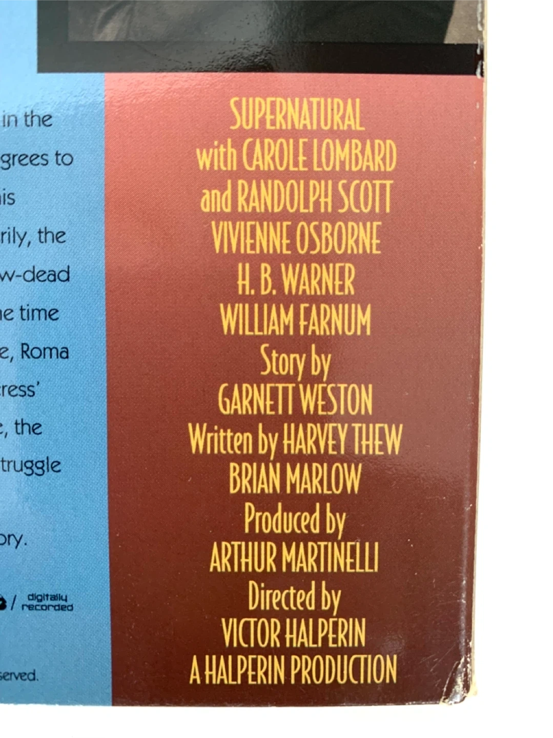 Supernatural VHS - Carole Lombard, Randolph Scott