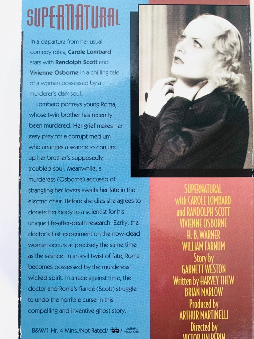 Supernatural VHS - Carole Lombard, Randolph Scott