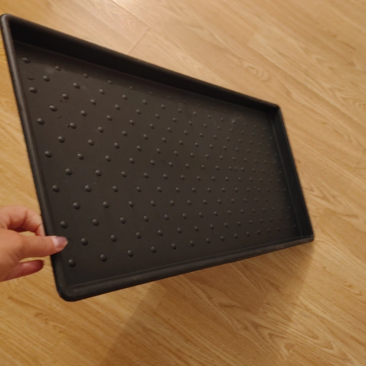 This boot tray is great for catching water and dirt from shoes. It's perfect for use by an entryway or mudroom. The raised edges help contain messes.