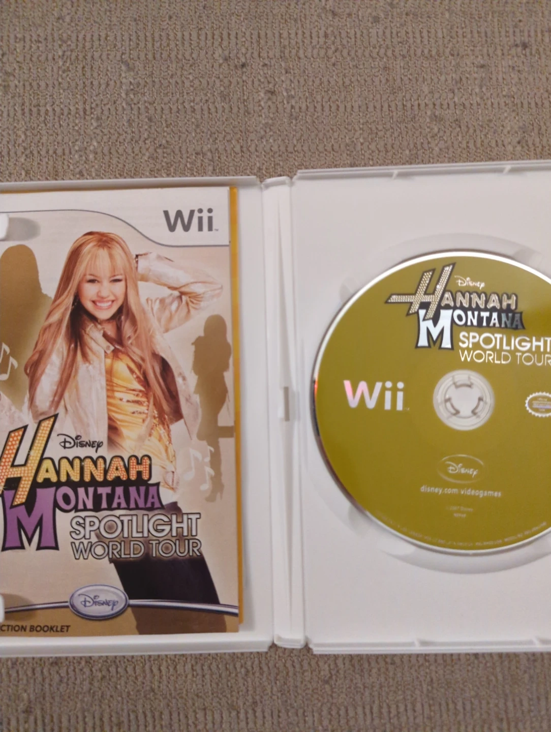 Play as Hannah Montana in this exciting Wii video game. It's the Spotlight World Tour! This game comes complete with the case and disc and English and French manuals, it may have never been played. Aka Miley Cyrus