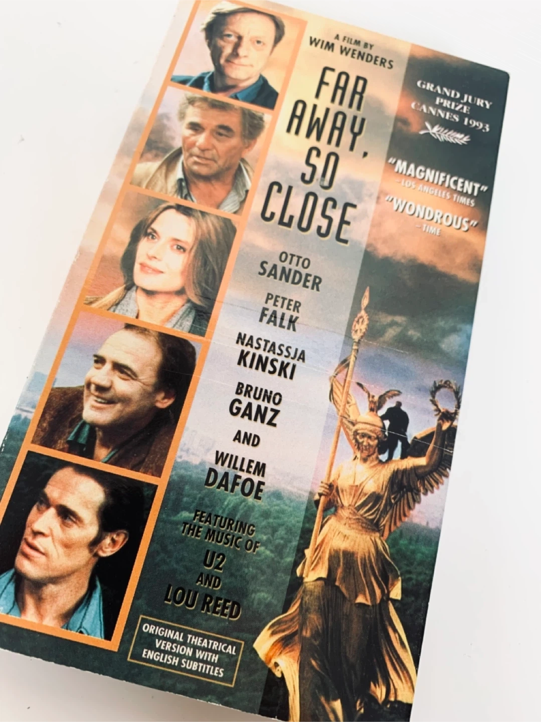 This is the VHS release of Wim Wenders' film 'Far Away, So Close!'. It's the original theatrical version with English subtitles. The movie runs for 140 minutes and was released in 1993.